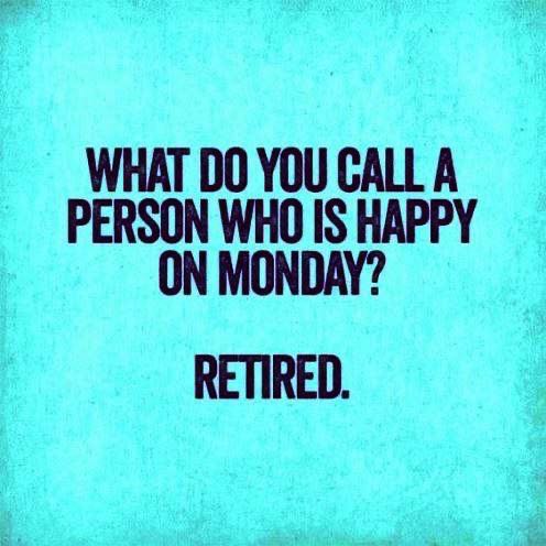 Funnily enough, I saw a different one on the same subject that day…the other one had some swear words in it though…lol. I’m not retired, but my husband is & he is much happier on a Monday than I am!