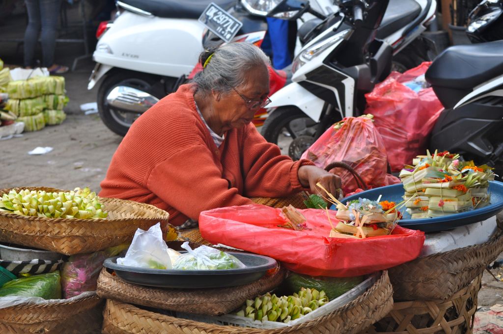 Some are elaborate, most are not. Some contain a few petals, maybe some rice, a cigarette, a couple of tiny crackers, an incense stick. There’s something so peaceful and mindful about watching the (mostly) ladies as they carry their baskets of offerings on their heads, and then carefully place them, saying a little prayer as they complete the mini ceremony.