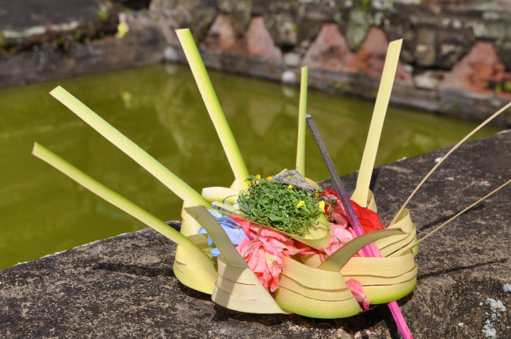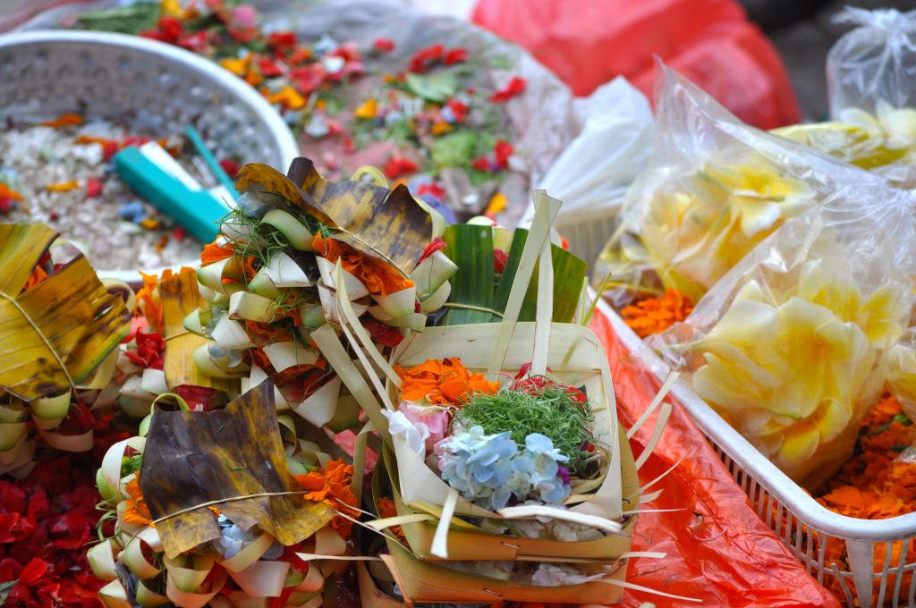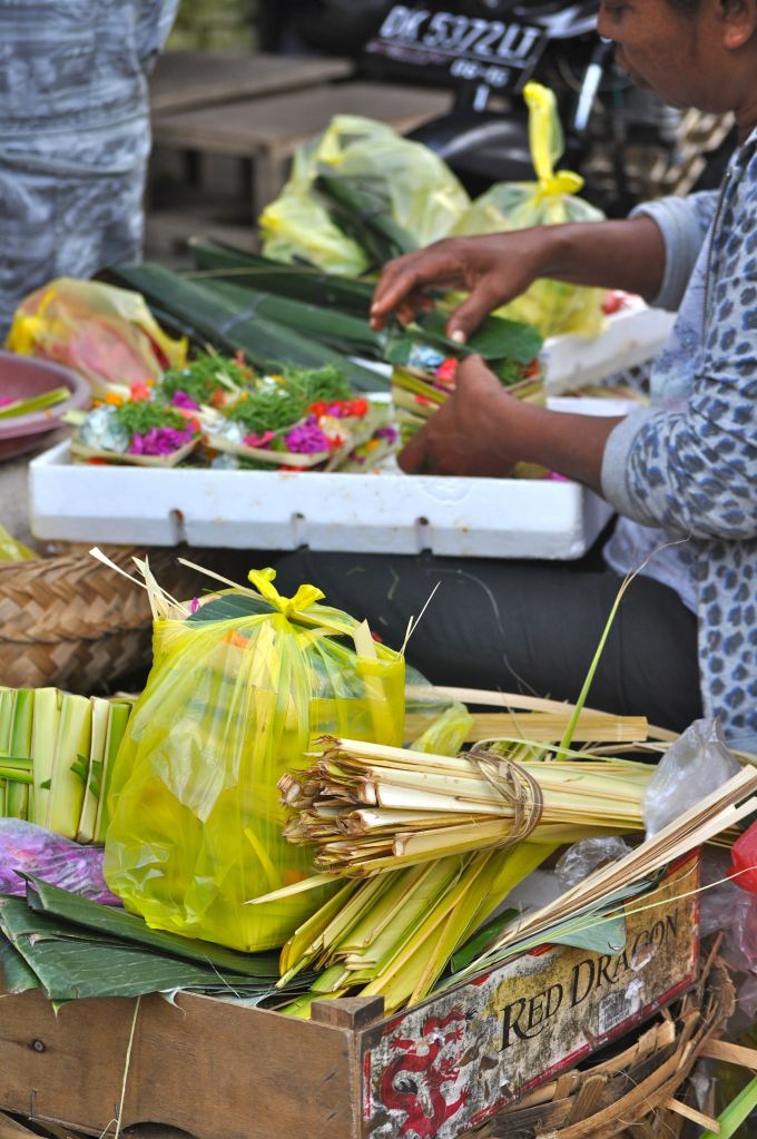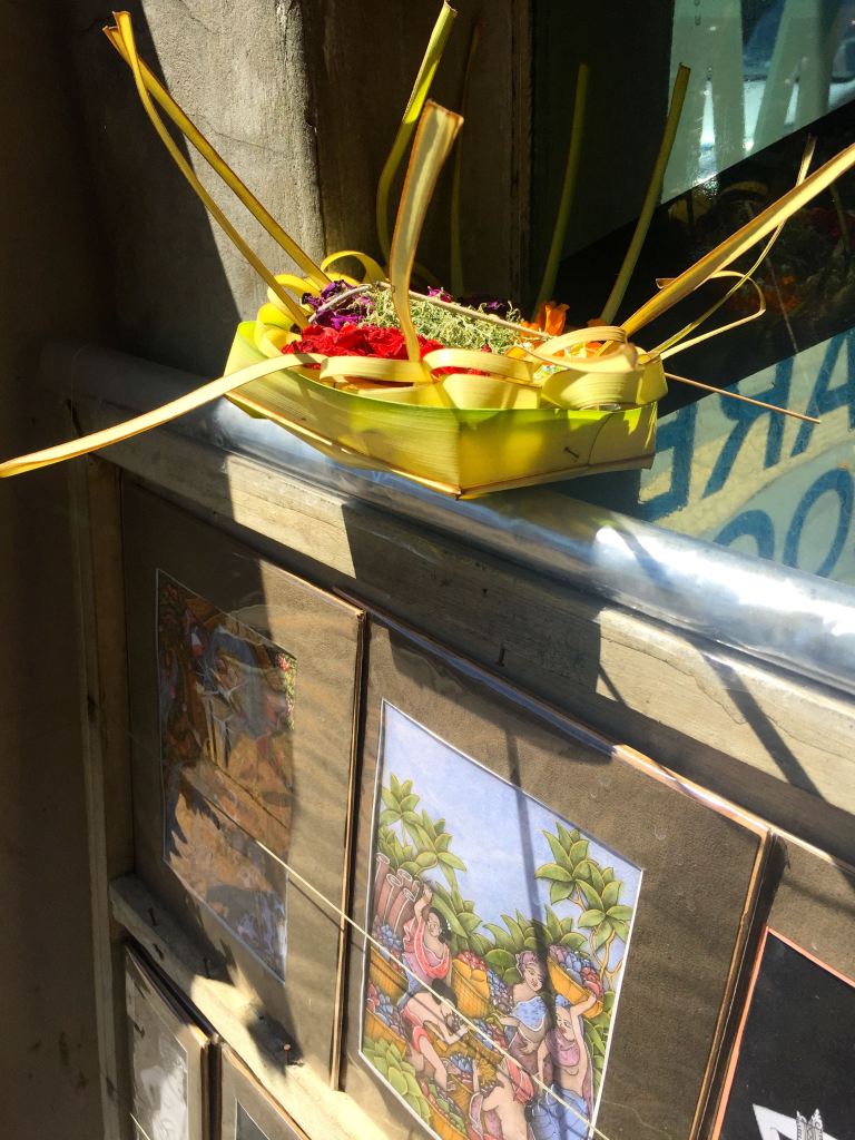 The daily offerings are the most obvious – the beautiful little palm baskets that are left around shrines, statues, doorways, roadsides, paths, steps…wherever.