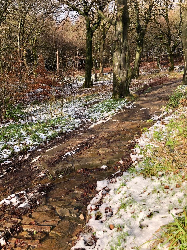 Not so much as to blanket everything, but enough to settle on the parked cars around the little duck pond; and enough to make the footpath very slippery indeed – as I found out trying to take a photo of the church. It had mostly melted by the time we were ready to head out, but we were still excited by it. It’s the little things.