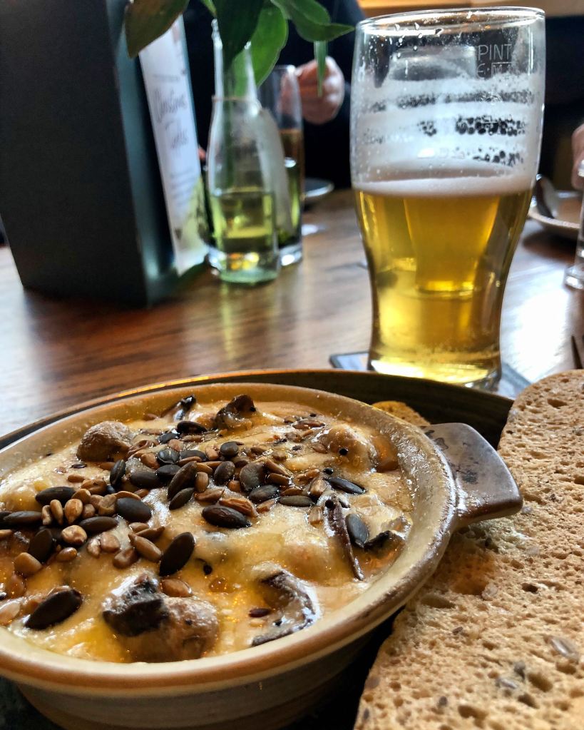 Castleton was super busy with most pubs in town booked out. We had lunch at The Castle. Given that we’d had morning tea in Bakewell, we all went for starters. I had a fabulous baked mushroom dish done in a cheesey-garlic sauce with rustic bread for dipping.
