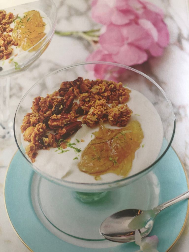 Instead, I’ll give you the granola – which I’ve tweaked only a tiny bit – and which is now the only granola my daughter tells me that I should be making. It’s full of nuts and orange zest and is seriously good with Greek yoghurt. F&M serve it with Greek yoghurt and Lime Marmalade (see below).