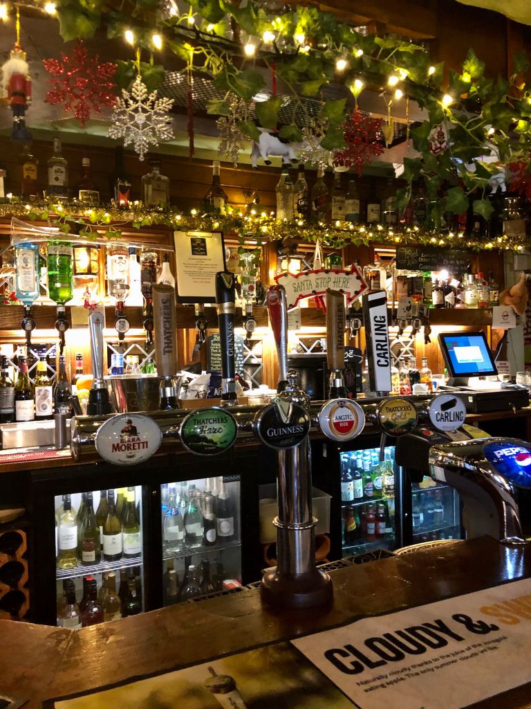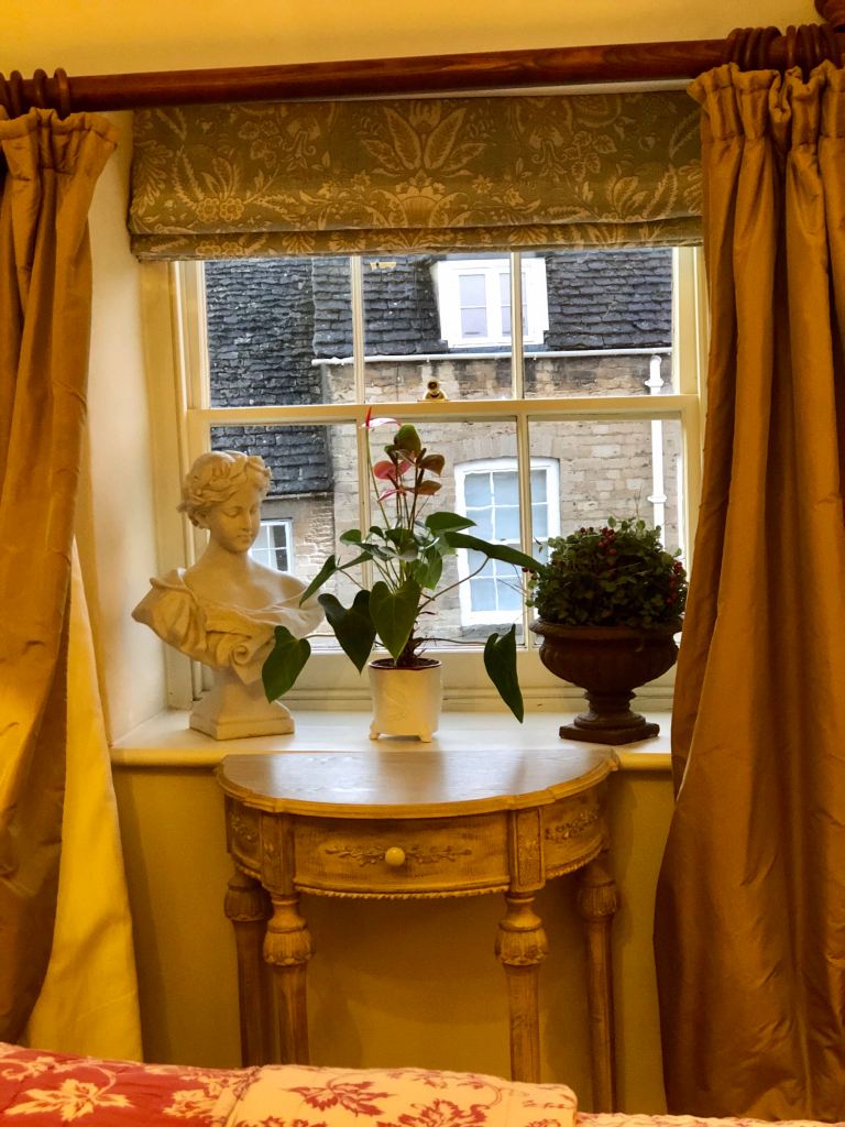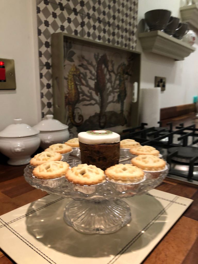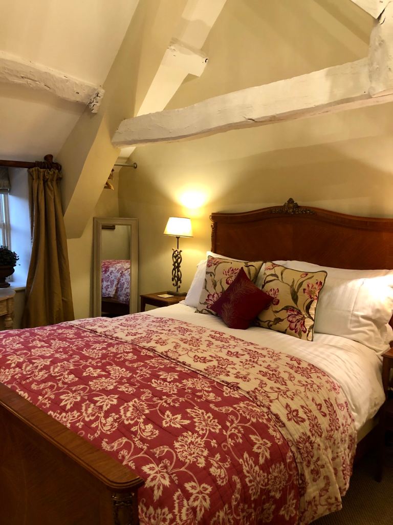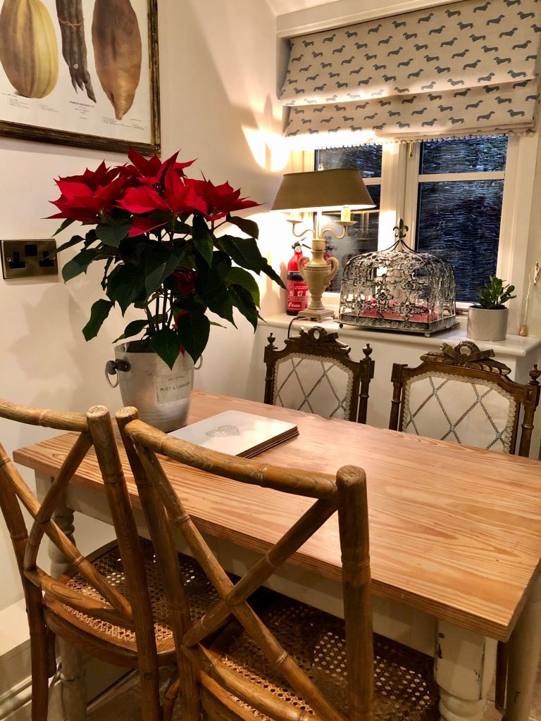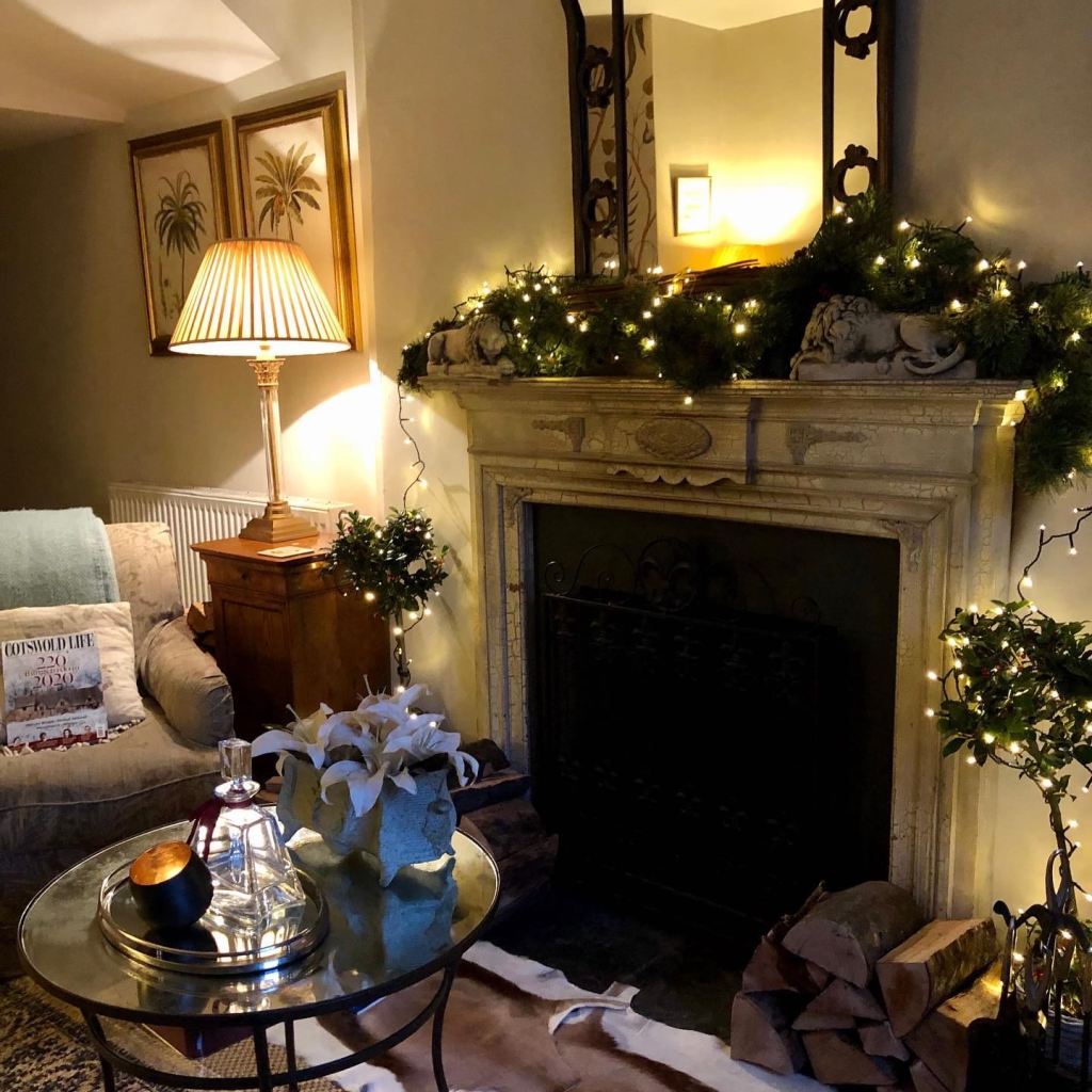 Our cottage in Tetbury is narrow, smaller than I expected from the pictures, but cute. The cottage is just one room wide – I think it must once have been part of the property next door – and three (and a half) floors high with the half-floor between ground and first being the bathroom. It’s beautifully styled and they’ve even left a small Christmas tree for us.