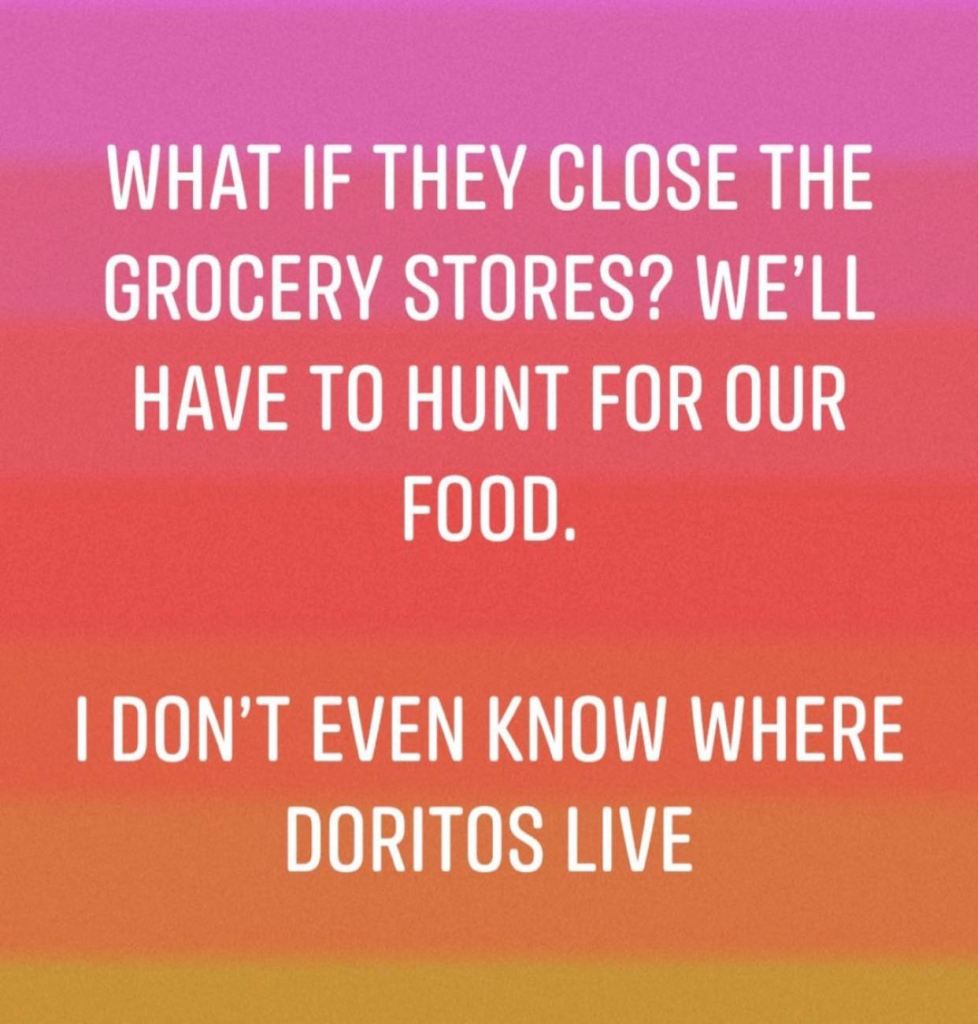 There have been heaps of memes floating around in light of current social distancing and quarantine or lockdown policies. Yes, I realise this is a serious situation but this one is one of my favourites.