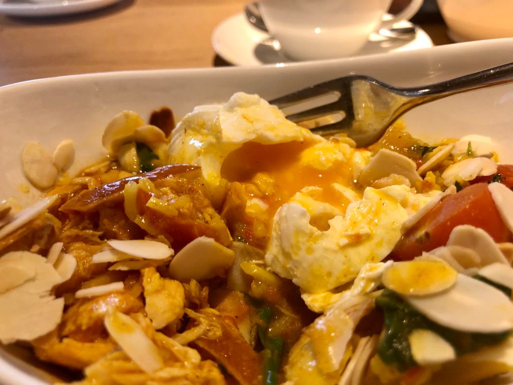 These days I quite like smoked eel – especially as a canape with beetroot and horseradish – but not for breakfast. I chose the kedgeree – and it was the best one I’ve ever had. It’s made with Severn & Wye hot smoked salmon, smoked MSC haddock, tomatoes, spinach, flaked almonds, and a poached egg.