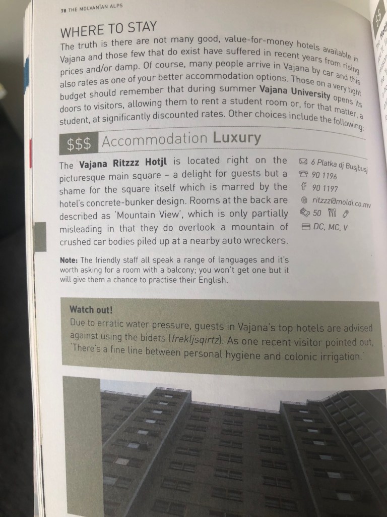 They’ve written them in a way that unless you read the words they could be mistaken for a serious travel guide – right down to the author biographies in the back of the book. It must have been so much fun.