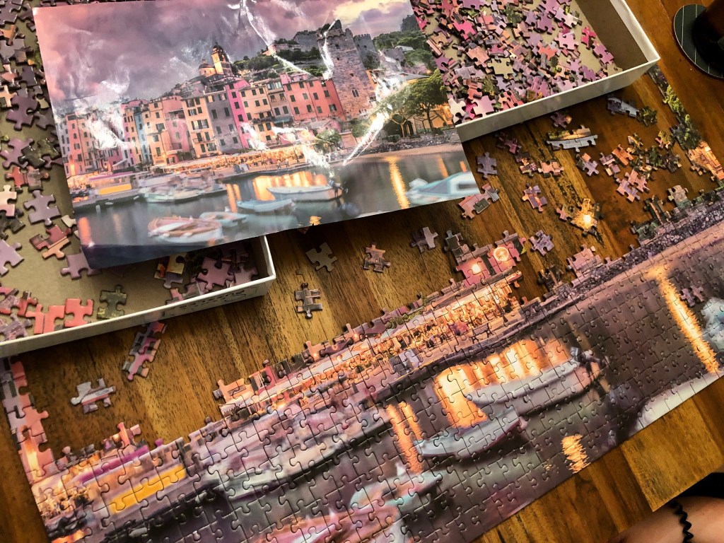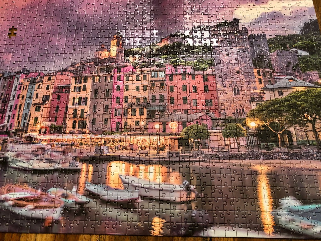 We did a contact-free swap with a friend in our suburb for this one. They’d warned us that it was missing a piece, but it was still disappointing to finish and see the empty space there.