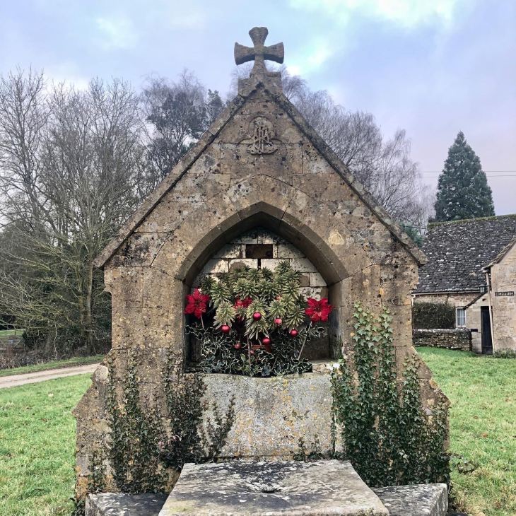 Anyways, Wyck Rissington is a quintessential Cotswolds village – it has a church, a village green that is only cut twice a year so becomes (apparently) quite meadow-like during the summer, a duck pond and a Victorian drinking fountain. What I adored is the little shelter on the green where newspapers are left for residents to collect and all the parish council news is posted.
