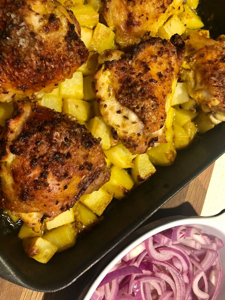 Tray-bake Thursday, as Sarah is beginning to call it, was Nigella’s Indian-spiced Chicken Traybake. I’ll blog it later this week…maybe.