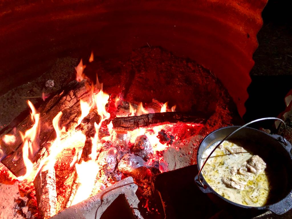 We had the braised chicken, with red wine, vinegar and tarragon over the campfire last year in Eucumbene, and the Boeuf Bourguignon last month for Destination Burgundy. I told you about that and gave you the recipe for the apple tarts here.