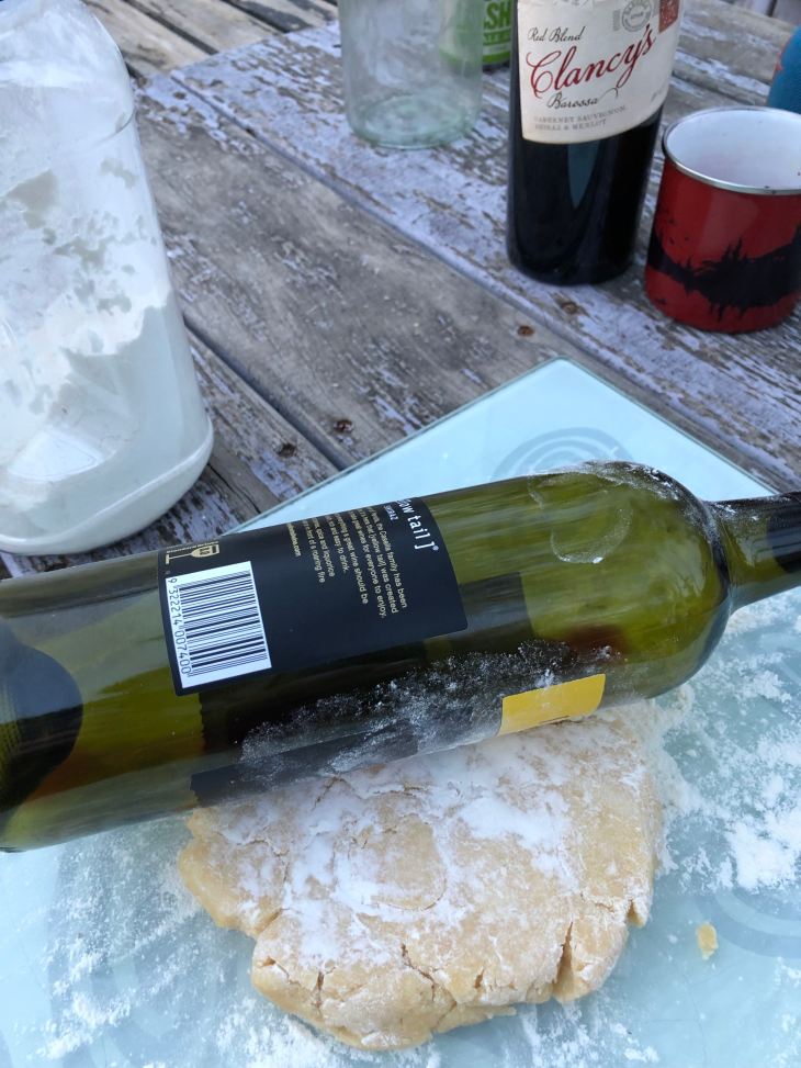 On the few occasions that I have attempted to flex my pastry muscle they haven’t all been fails – this one I made in Eucumbene last year worked really well, although it wasn’t as beautifully elastic as the ones James Martin makes on the TV shows I watch. In the pic above you can see it crumbling as I rolled it. Maybe it tasted as good as it did because I made it outside with a wine bottle for a rolling pin. There was, however, no denying that last weekend’s attempt was not a good one.