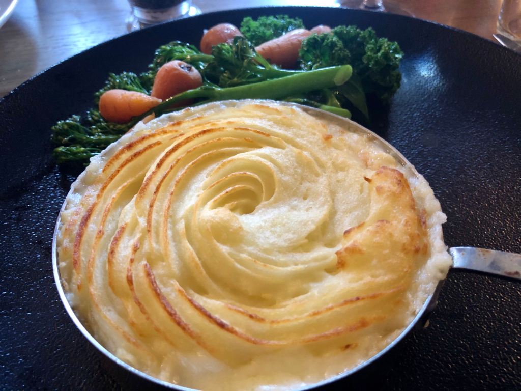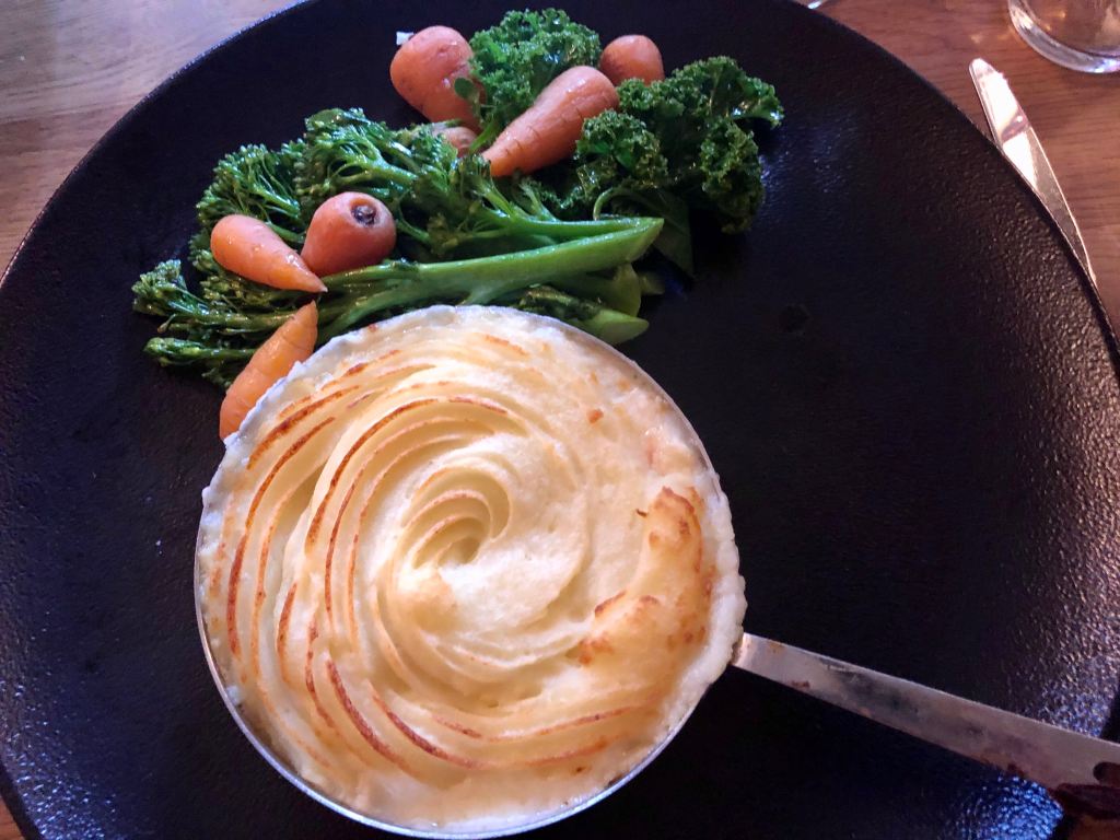 I had a fish pie with the sort of veg I’d been craving, Sarah had ravioli and Grant had the pork faggots – which he loved but were way too rich and offally for me (they’re essentially a rissole made from offcuts and offal).