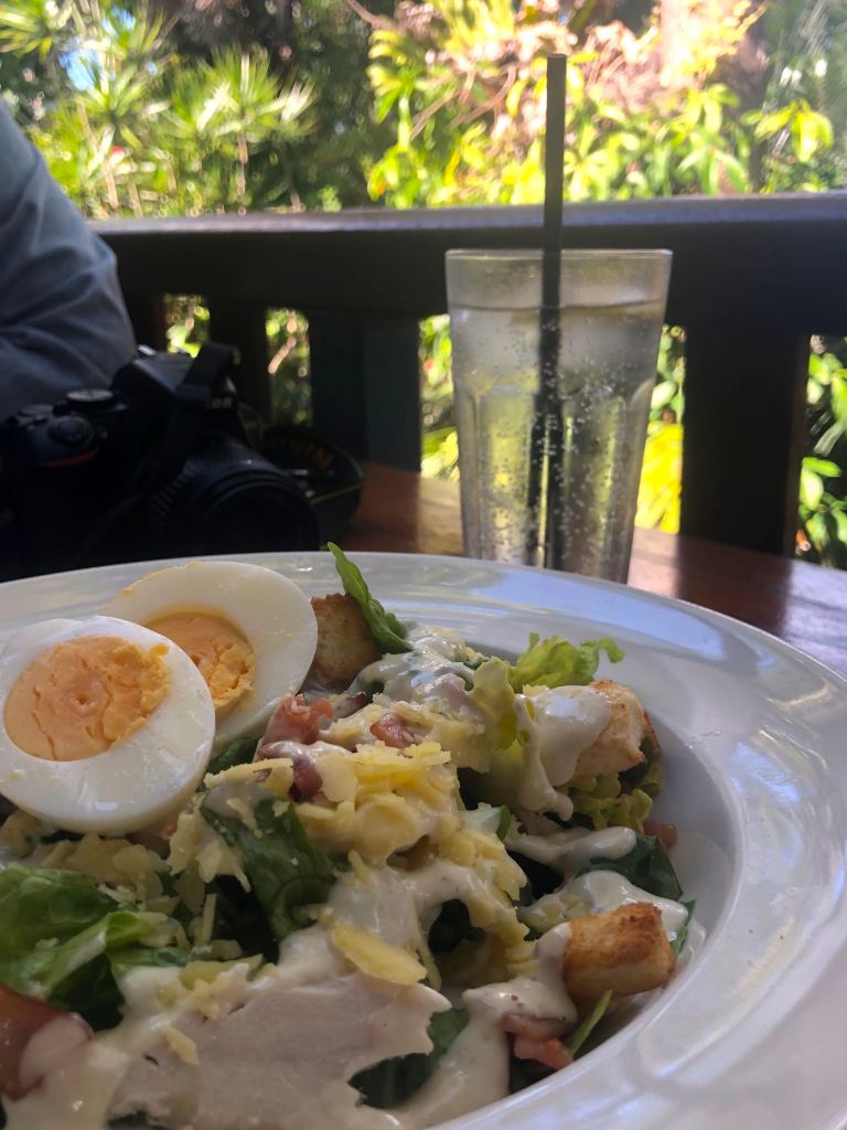 We’d planned to eat lunch at the pub, although the one we wanted to go to was closed because of COVID-19 – and so were a few of the others we wanted to go to. There are, however, other options all through the village. We ended up with a (very average) Caesar Salad at Rainforest View Restaurant – but the view was great.