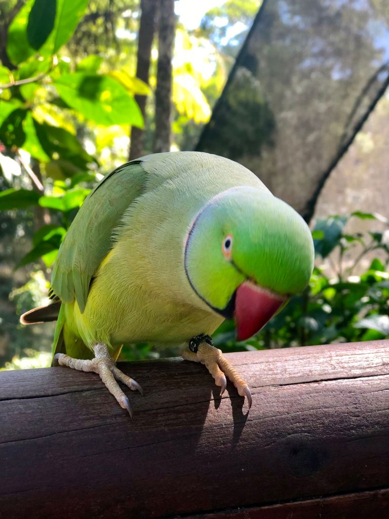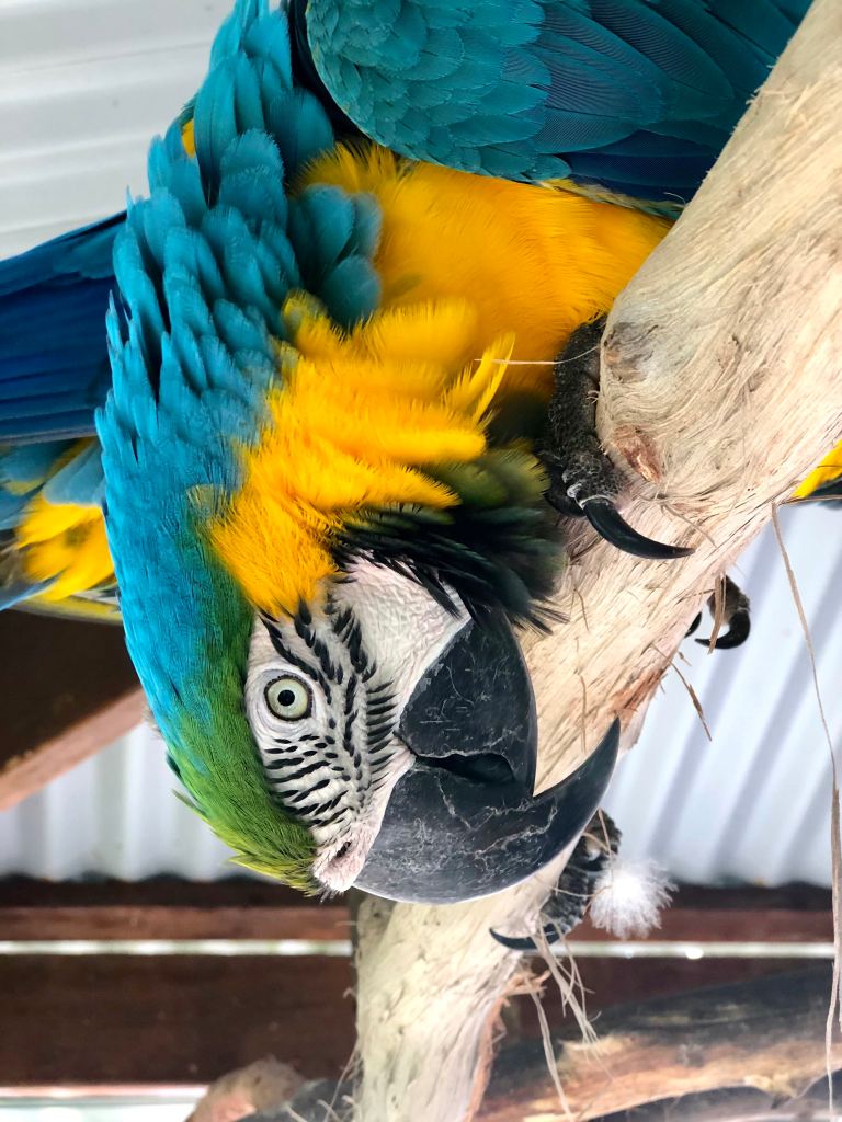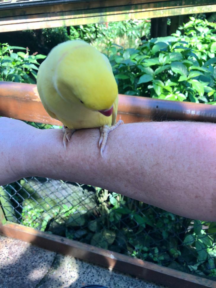 Sarah really isn’t a fan of birds (I have this fabulous photo of her at 2 or 3 with her little face screwed up and howling because a lorikeet at Currumbin Bird Park landed on her shoulder) and muttered pretty much the whole way around “it better not come near me…” I have no such issues and laughed as they climbed all around me.
