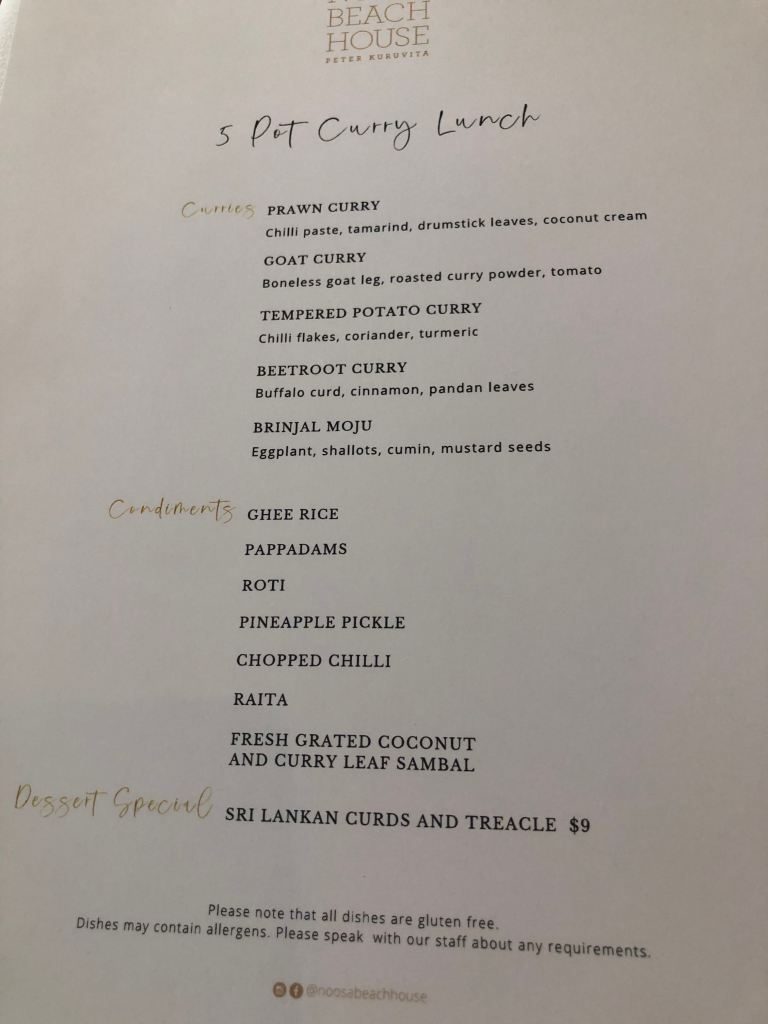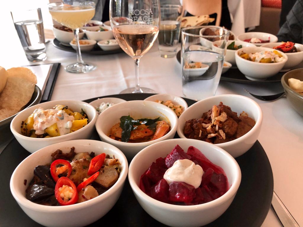 We went up to Noosa yesterday for a 5 pot curry lunch at Noosa Beachhouse. We’ve done this a few times before, but due to COVID-19 it’s no longer a sharing platter but rather individual trays with little pots of curry.