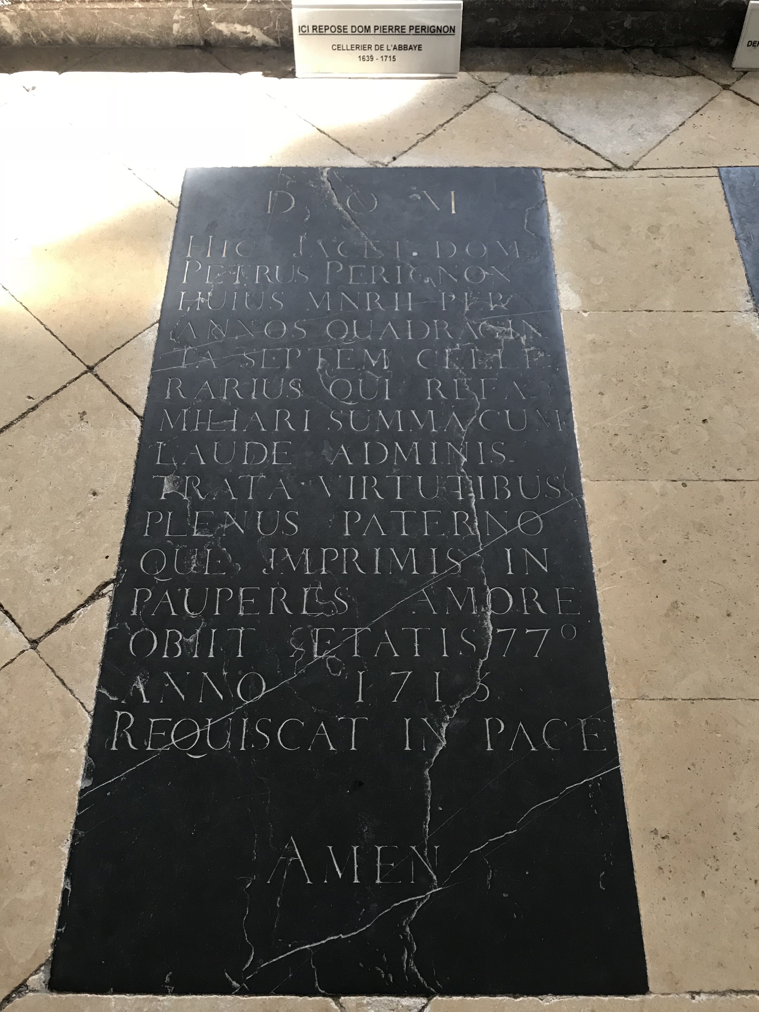 As for the man himself? He died in 1715 and his tomb is in front of the altar in Abbaye Saint-Pierre d’Hautvillers.