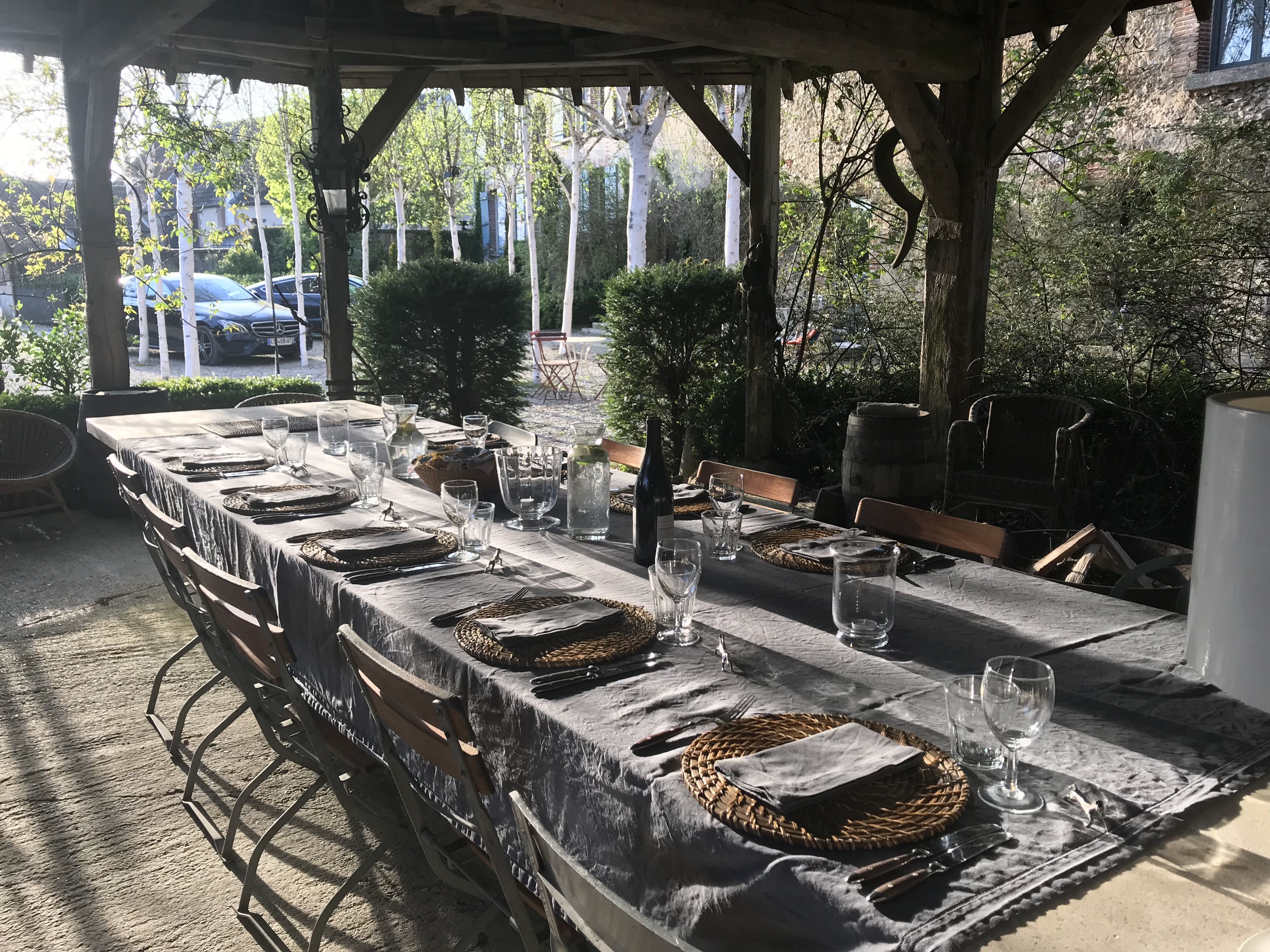 Imagine if you will, fields of golden canola glistening in the late afternoon light, a long table dressed for dinner in a sun-drenched courtyard, the buzzing of bees as they flit from blossom to blossom, aperitifs in amongst the birches. Now take that image and pop it into a quintessentially French village in Champagne on a sunny Saturday afternoon in spring and you have dinner at Aupres de L’Eglise.