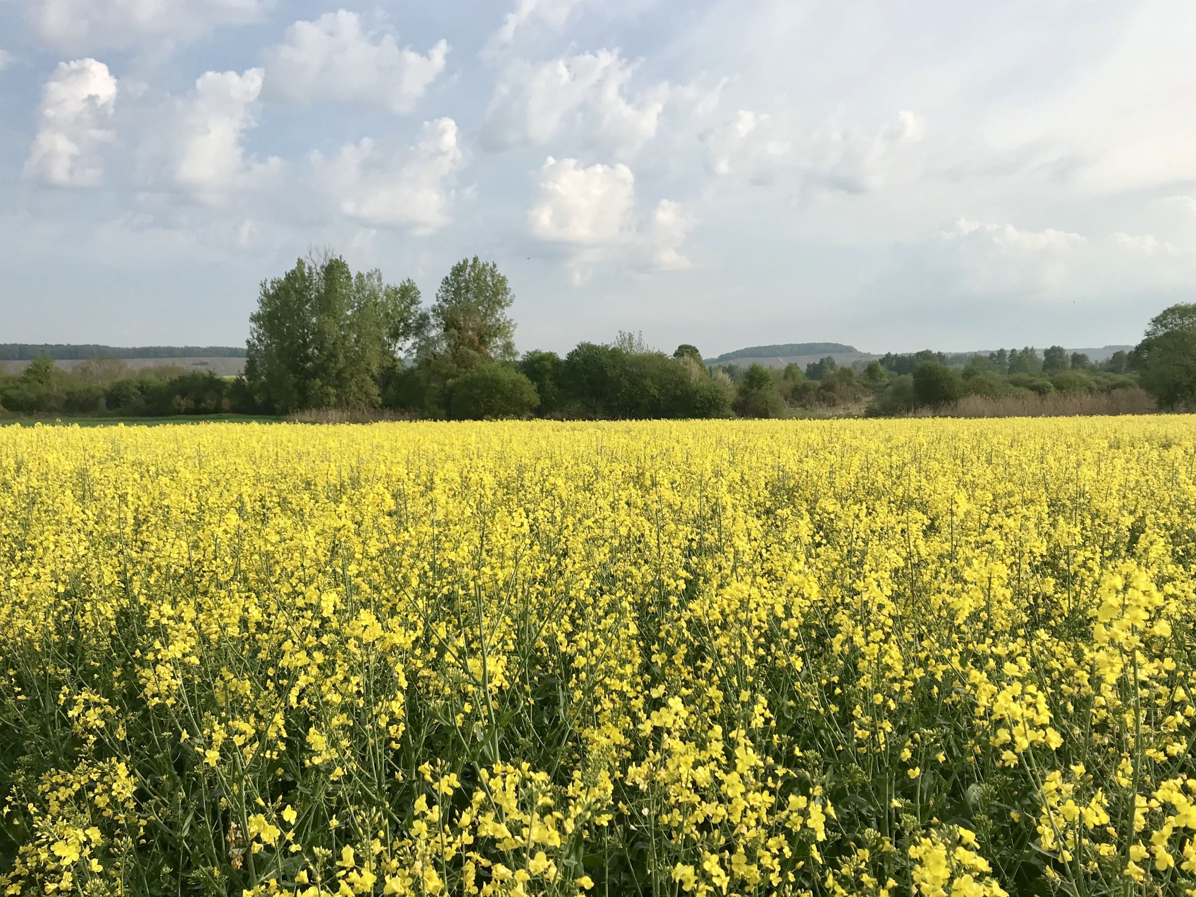To get here we drove through acre after acre of sprawling canola fields – or colza as they call it in France. From a distance, it appears as though the yellow has been painted into the green. When we get out of the car to take a photo it’s almost as tall as me – which, admittedly, probably doesn’t mean a whole lot…