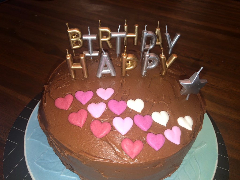 Just as I’m not big on cakes, I also tend to avoid anything that requires icing and decorating, but, as I said, this was a birthday cake, so off I went to the supermarket for candles and these little sugar heart thingies.