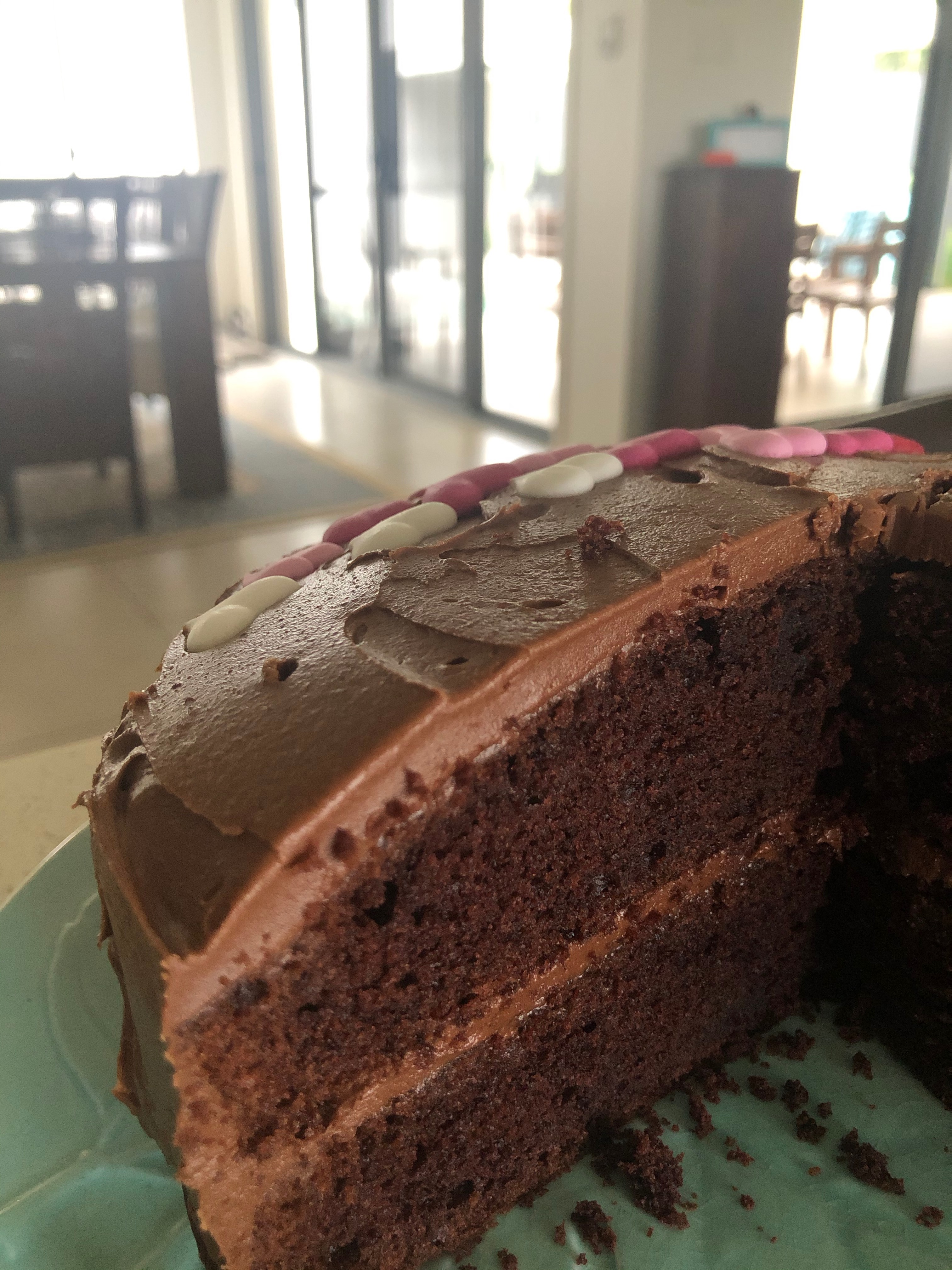 Having said that, it was hubby’s birthday on Monday and a birthday requires a cake – and nothing says birthday cake more than a double-layered chocolate cake does. So that’s what I baked him.