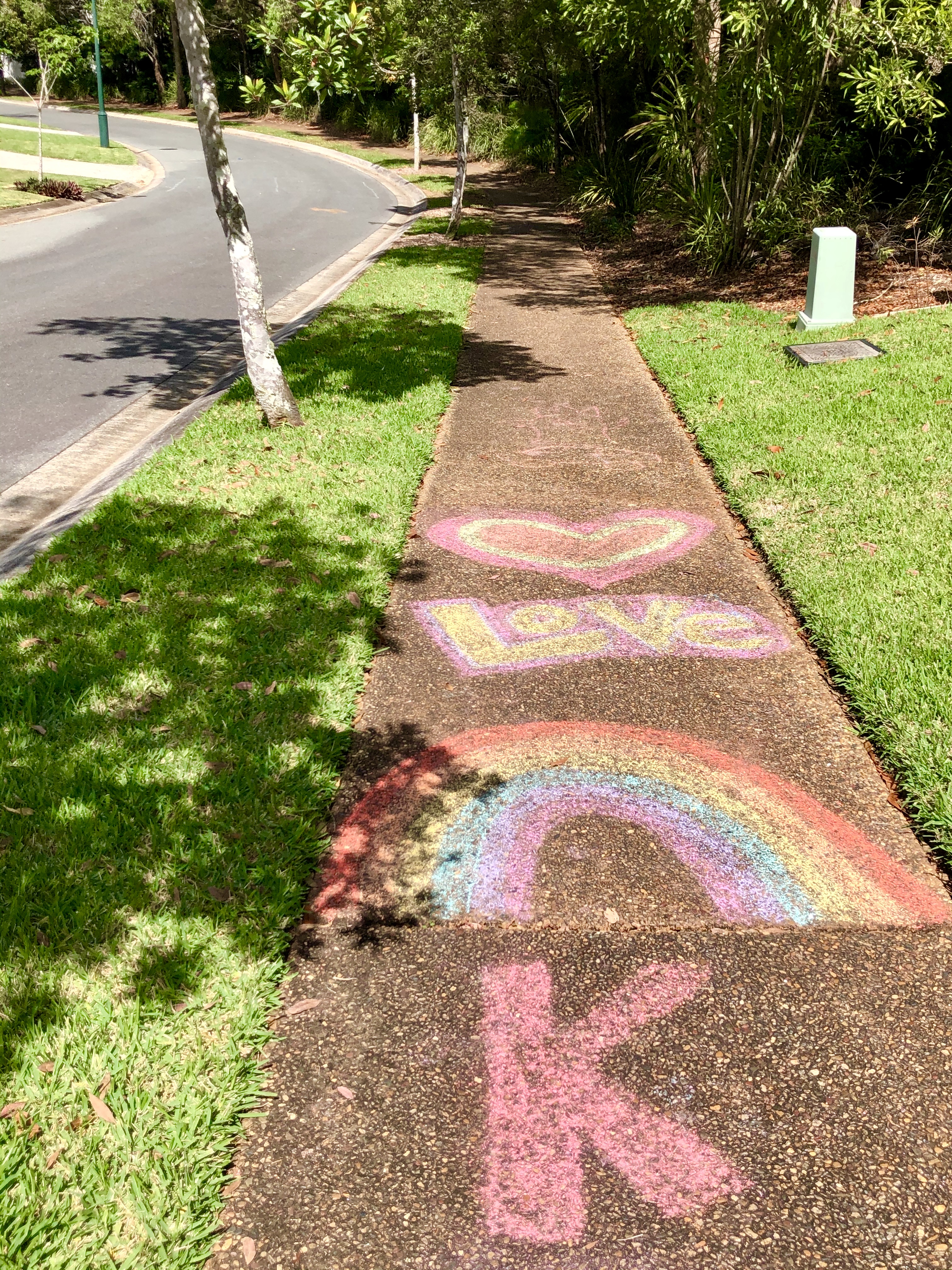 I love the chalk paintings on the sidewalk…to me that is such a happy way to make others smile in crazy times.
