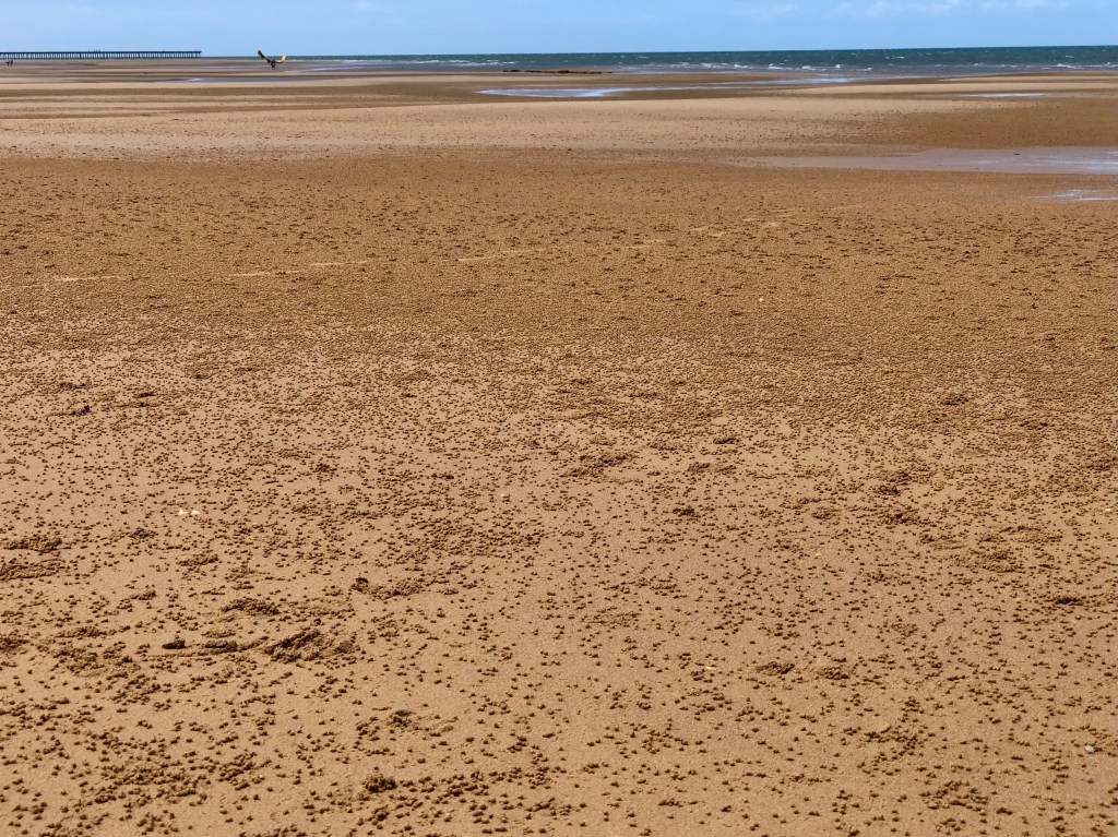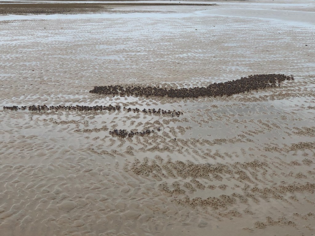 The other afternoon I saw these strange dark lines in the sand, but when I got closer the lines began to move – they were armies of soldier crabs. They’d march and then disappear into the sand. Freaky, but also pretty cool.