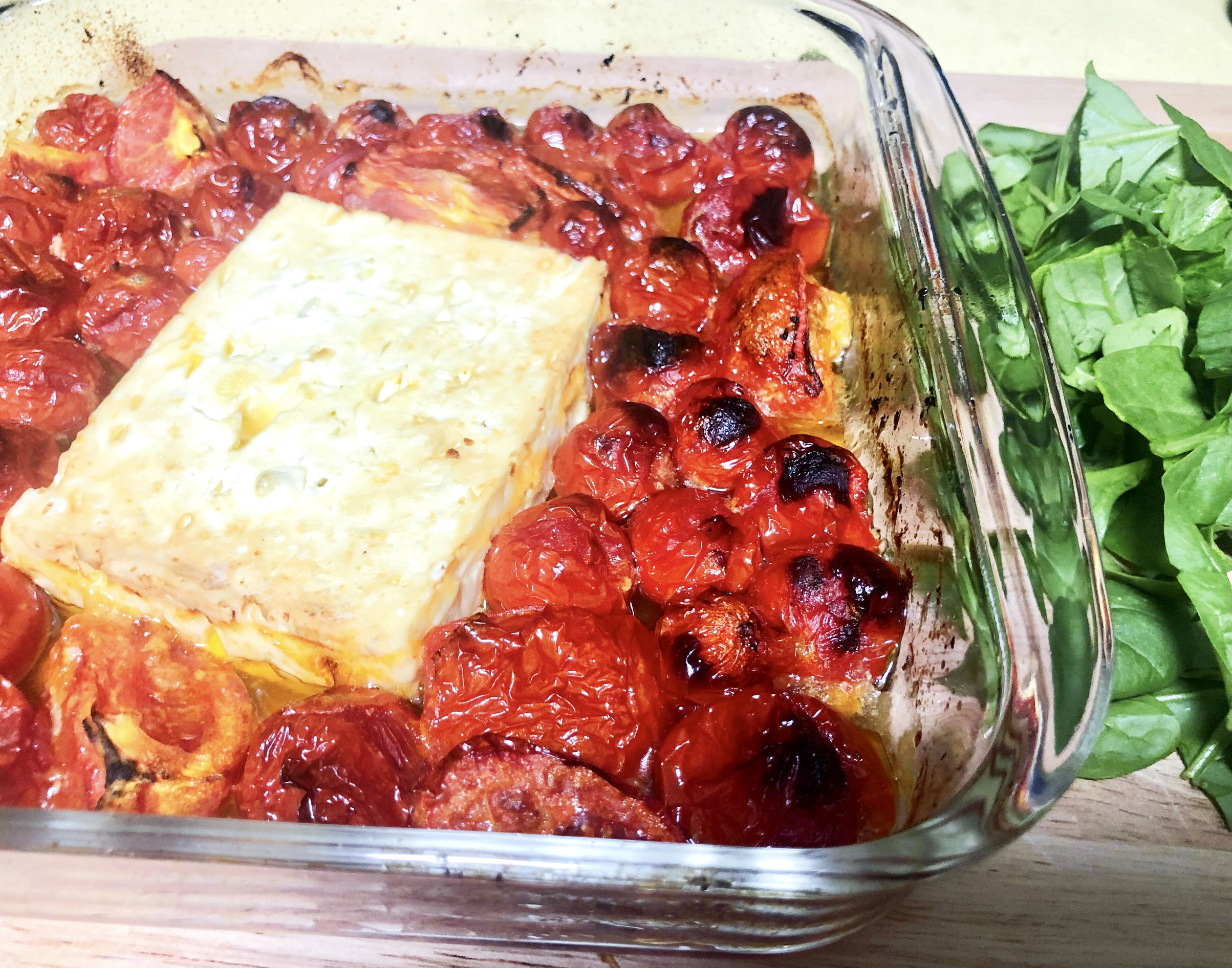 I had a work meeting scheduled in for straight after our zoom call so ate my lunch at my desk. Today it’s leftovers from last night – the pasta that’s doing the rounds on TikTok at the moment. You take some cherry tomatoes, olive oil and garlic and pop it all into a baking dish. Add a slab of feta cheese and whack it in a hot oven for 40 minutes. You squash the tomatoes and feta with a fork until you have a sauce and stir through cooked pasta. I pimped it up with some basil, some spinach and a few olives I found in the fridge. Too easy and, actually, surprisingly tasty. Next time I think I’ll toss some chorizo in. The photo below doesn’t do it justice.