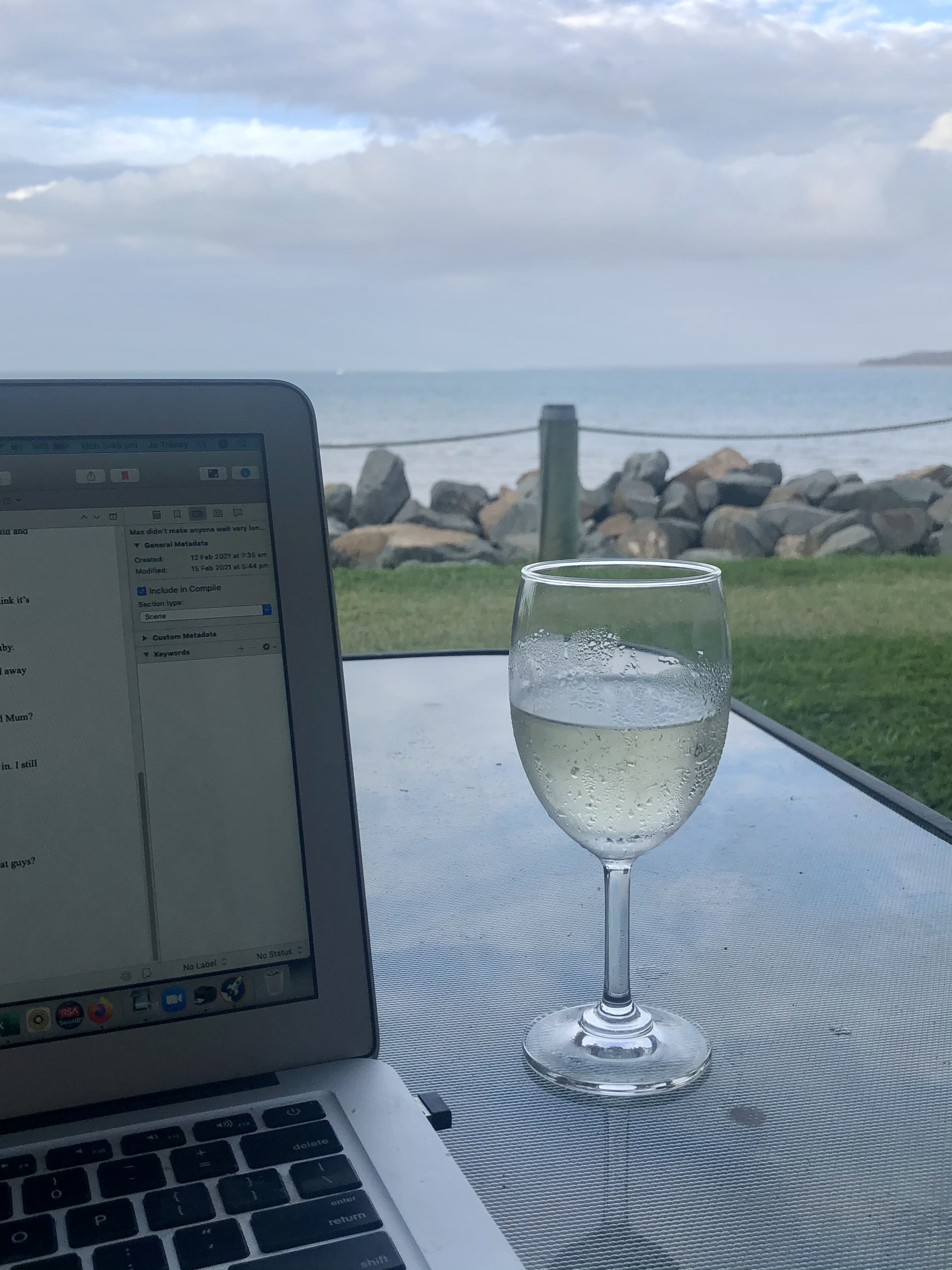 Normally I’d go for another walk after work – it gets my head out of day job stuff. Today though, I’m catching up with Deb for a quick drink down at the marina. It’s one of the pluses of Sares moving up here – I get to catch up with her a tad more often and talk all things books and writing.