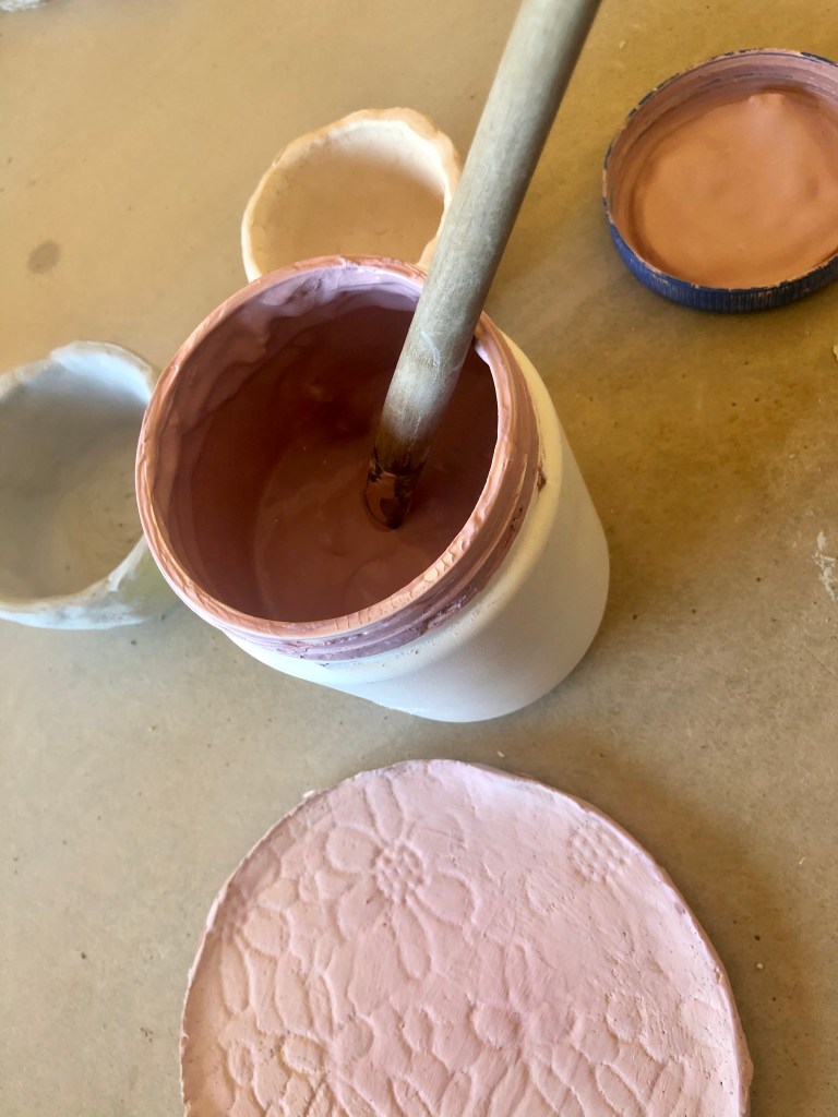 A month or so ago Sarah and I attended a wine and clay night – where we took along a bottle of wine and played with some clay. Last weekend we went back to glaze our masterpieces and I’m now imagining how they’ll look once out of the kiln.
