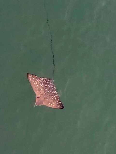 The highlight yesterday morning was a group of eagle rays – 4 or 5 of them – dancing around under the pier.