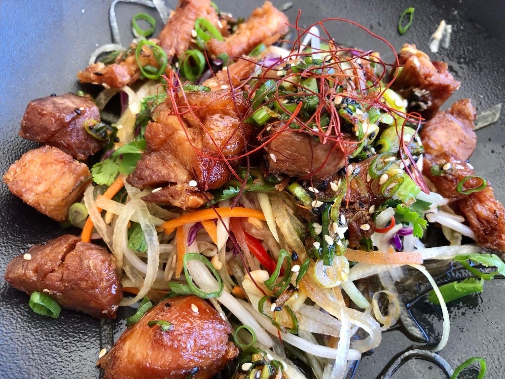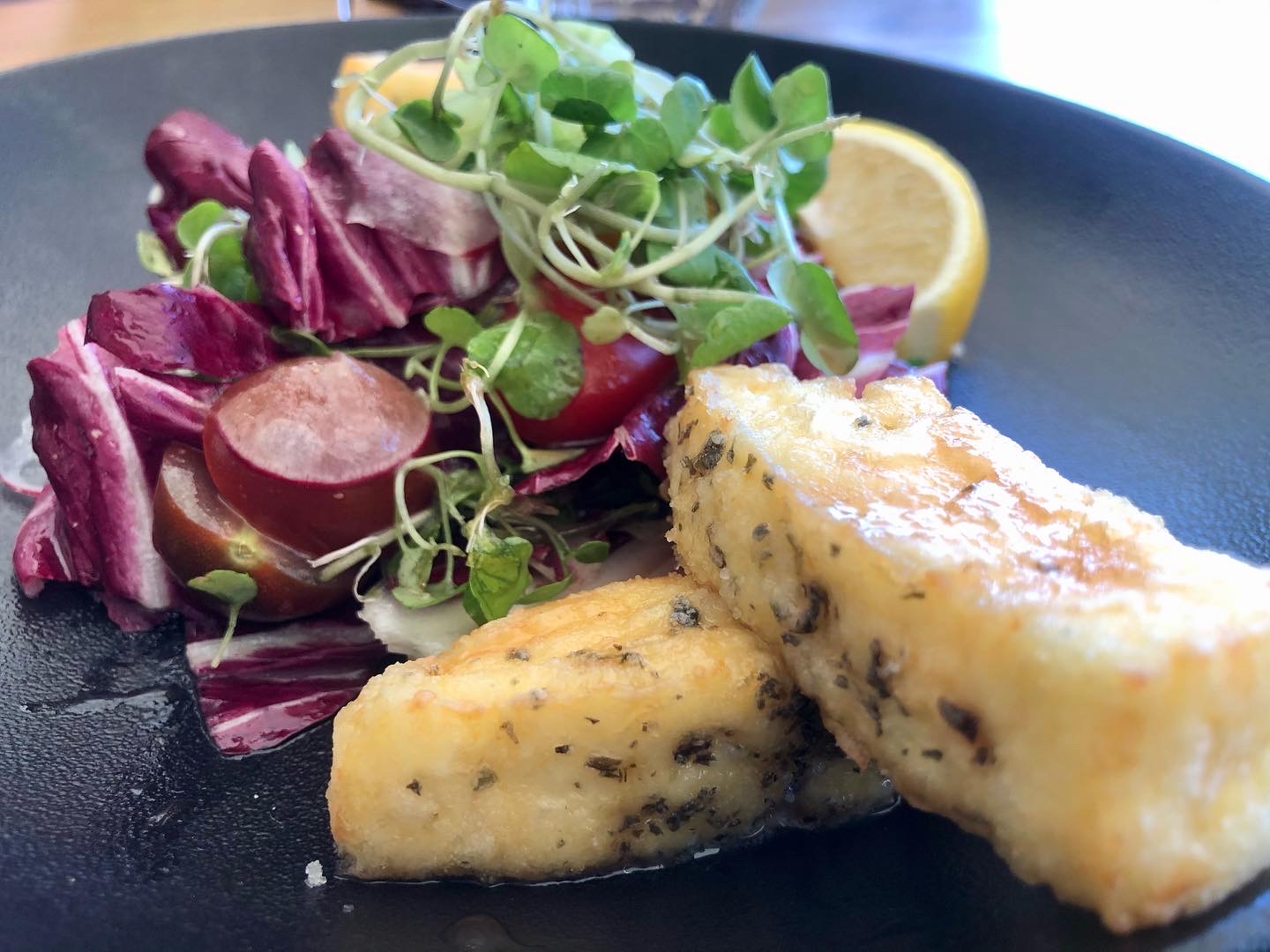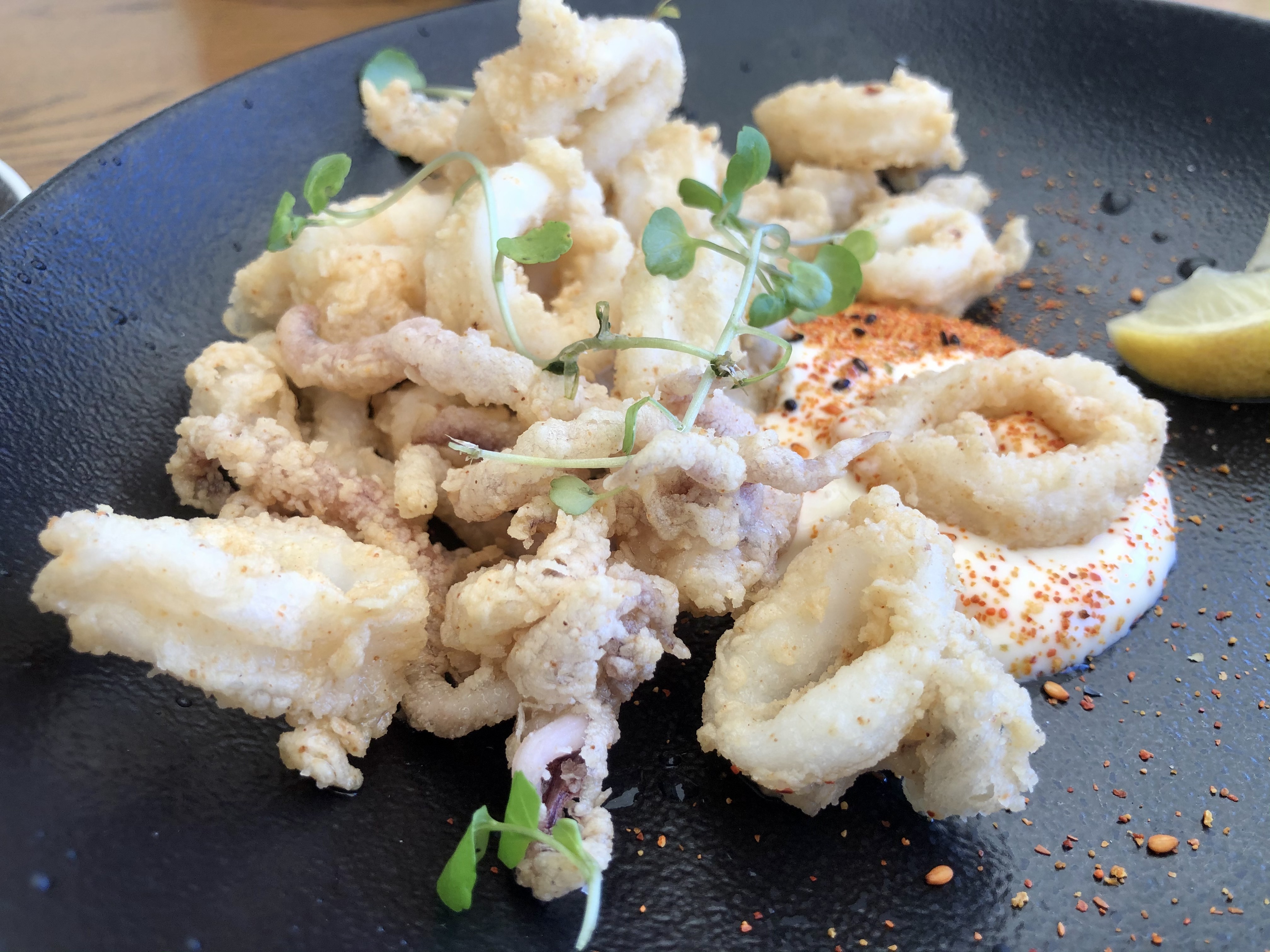 On our table were crispy halloumi fingers with a cucumber and radicchio salad and sumac yoghurt, salt and pepper squid with togarashi mayo, and caramelised pork belly with a green papaya salad. All washed down with a glass of rose and this view.