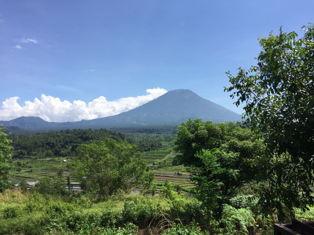 Speaking of volcanoes, here’s some more green… This pic of Gunung Agung, Bali’s highest volcano, was taken at Bali Asli – a restaurant in the eastern regency of Karangasem.