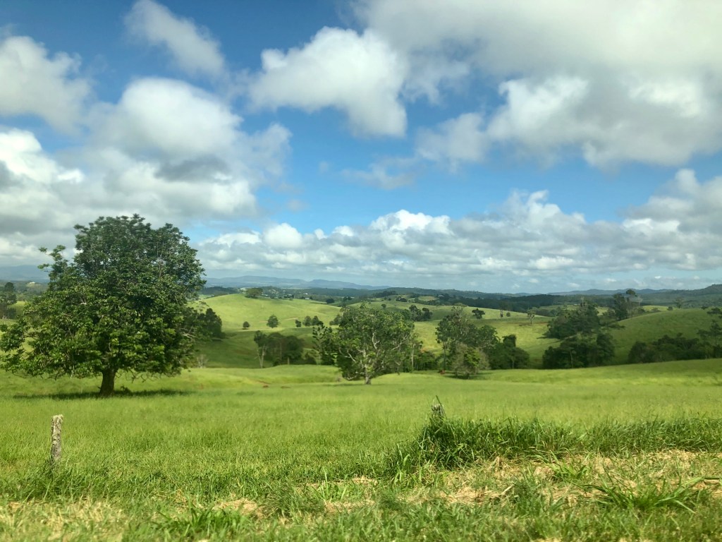 When we first visited Cairns last year we heard a lot about the Atherton Tablelands: how lush and fertile it was on the other side of the range, how it was the food bowl of north Queensland, how they could grow almost anything over there (with the exception of wine grapes). Yet when Grant and I ventured over from Kuranda we didn’t see any of that. What we saw were mango and avocado farms changing into savannah beef country the further north we went. Miles of scrub with massive anthills. Interesting country, yes, but definitely not the green food bowl I’d been expecting.