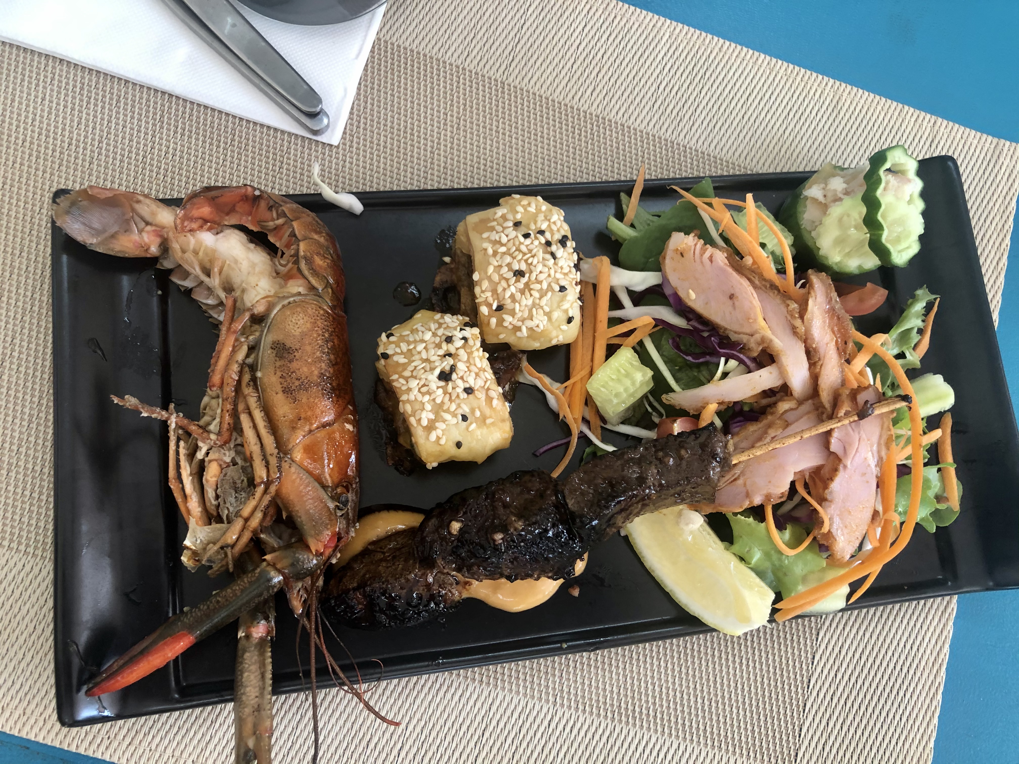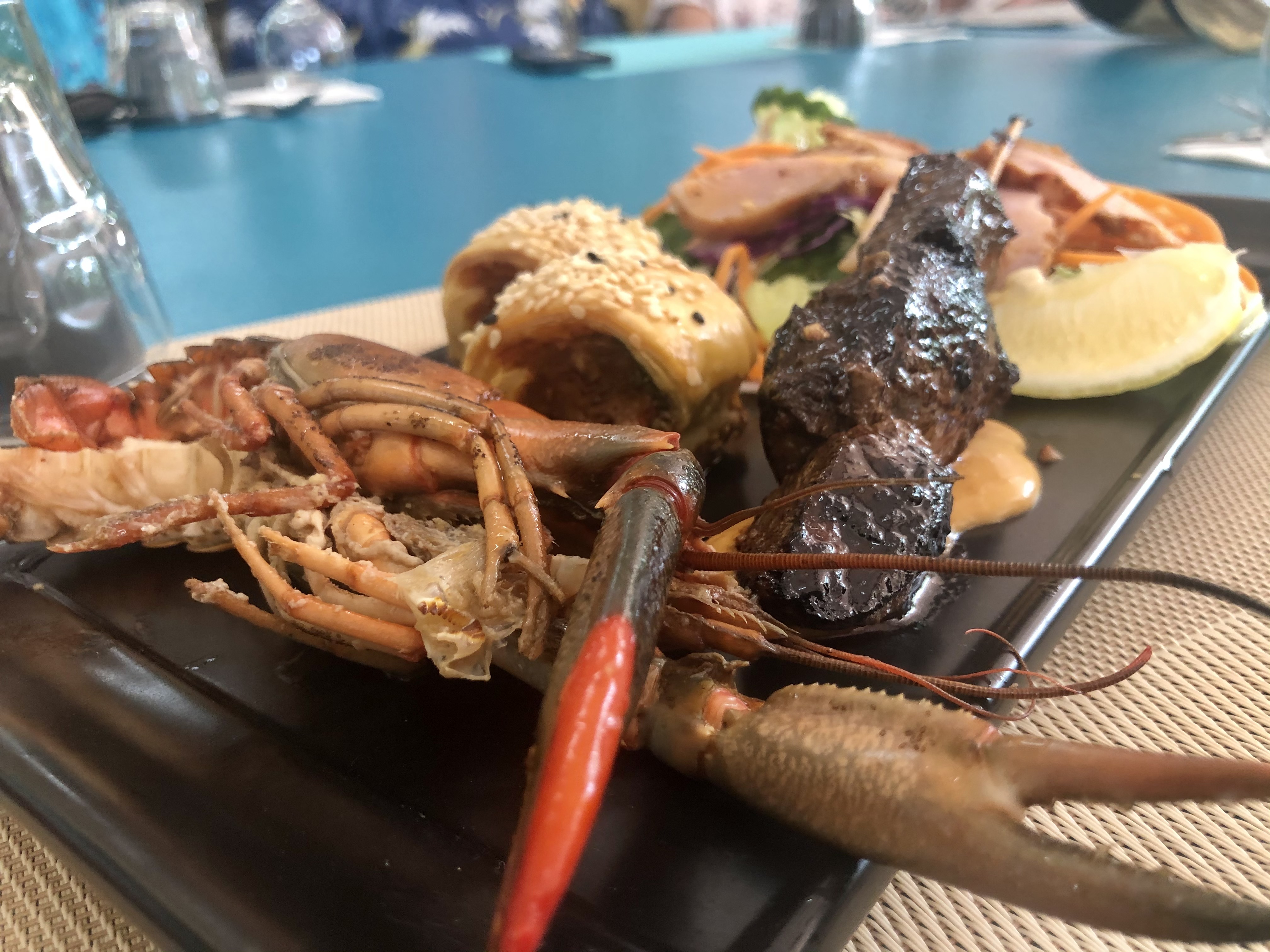 On the platter was a skewer of kangaroo served on satay sauce, red-claw yabby, crocodile and chorizo sausage rolls, salad and some house-smoked chicken and fish. I was hard-pressed to choose a favourite taste, but think the crocodile sausage rolls might just have inched out the yabby.