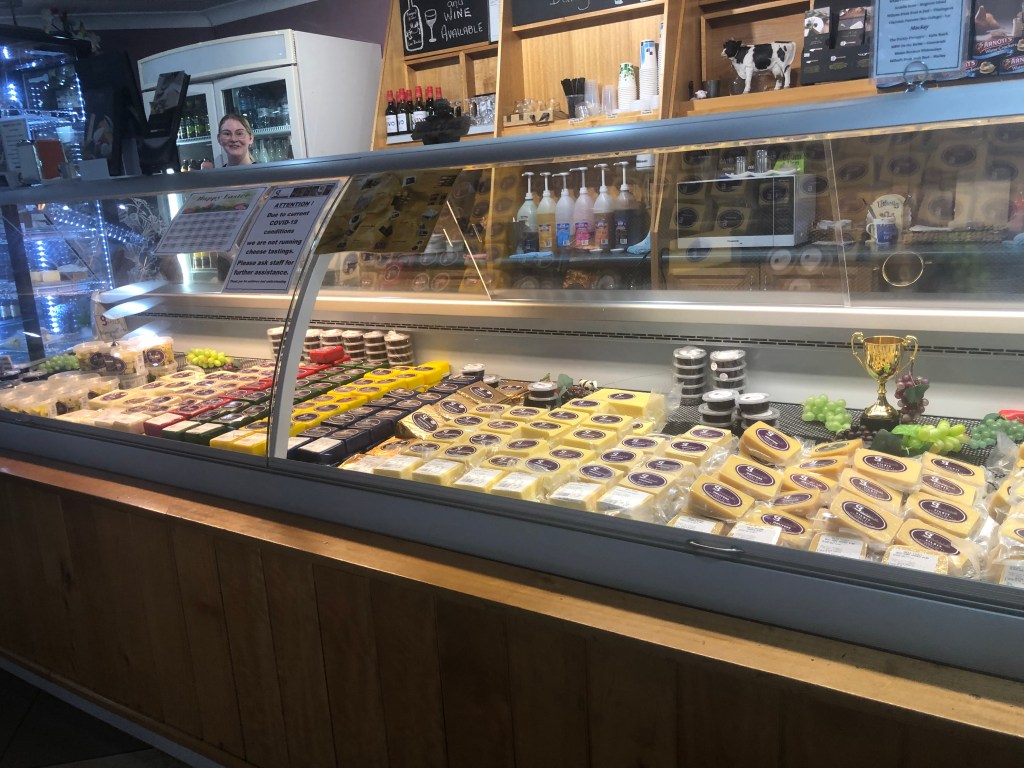 A short drive brought us to Gallo Dairies where, due to Covid-safe practices we couldn’t taste the cheeses we’d tried earlier (although we could purchase them) but we did try chocolate – and it was very good indeed.