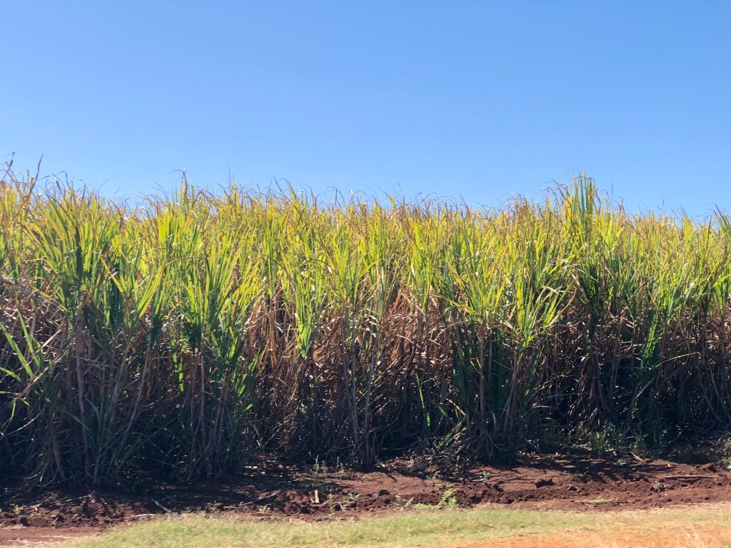 This area is richly agricultural – sugar, ginger, sweet potatoes, strawberries, chillies and so much more. Beyond one field of sugar we saw another filled with sunflowers. (Sadly) we couldn’t stop for a photo.