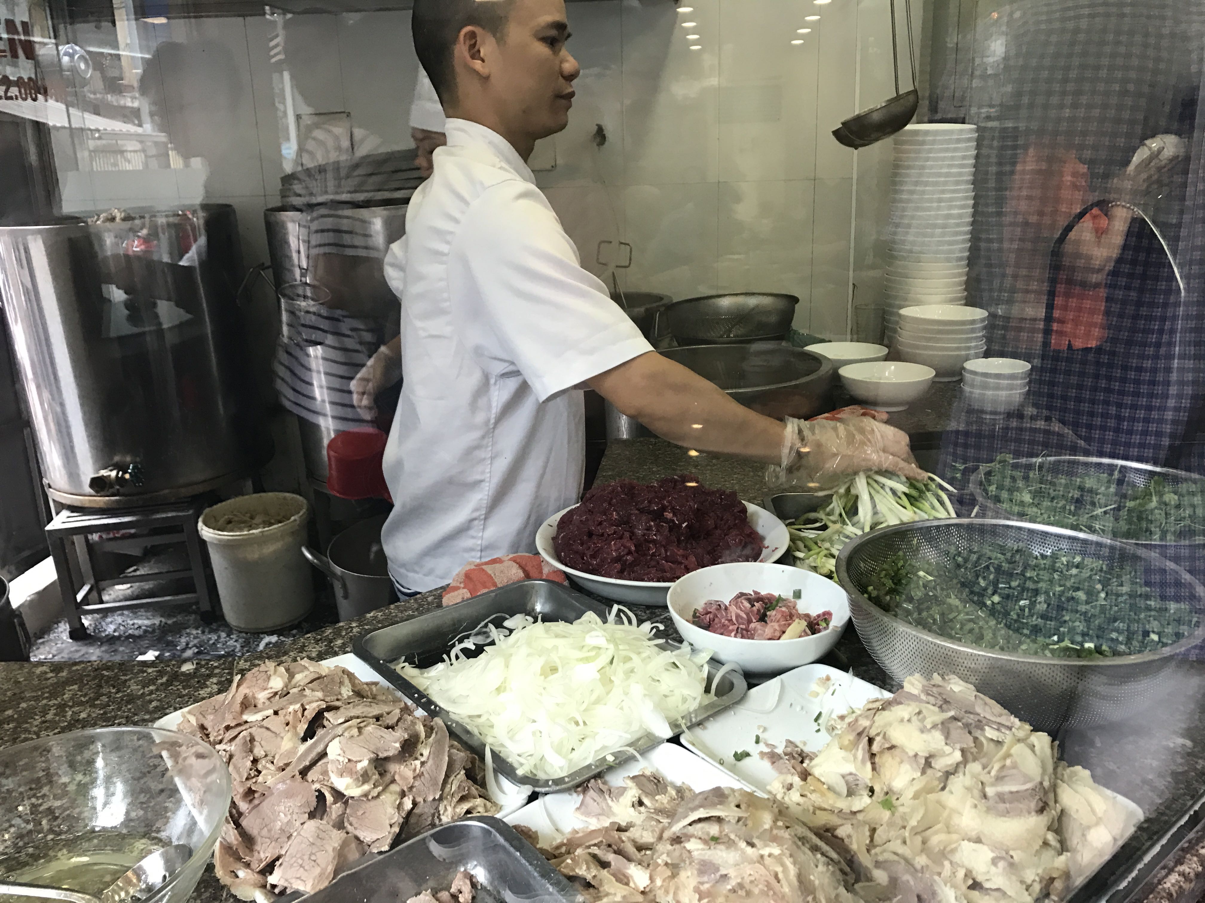 It sounds simple enough – flat rice noodles, thinly sliced raw beef, a few herbs and spring onions, and then an aromatic boiling broth is poured over the lot to cook the meat.