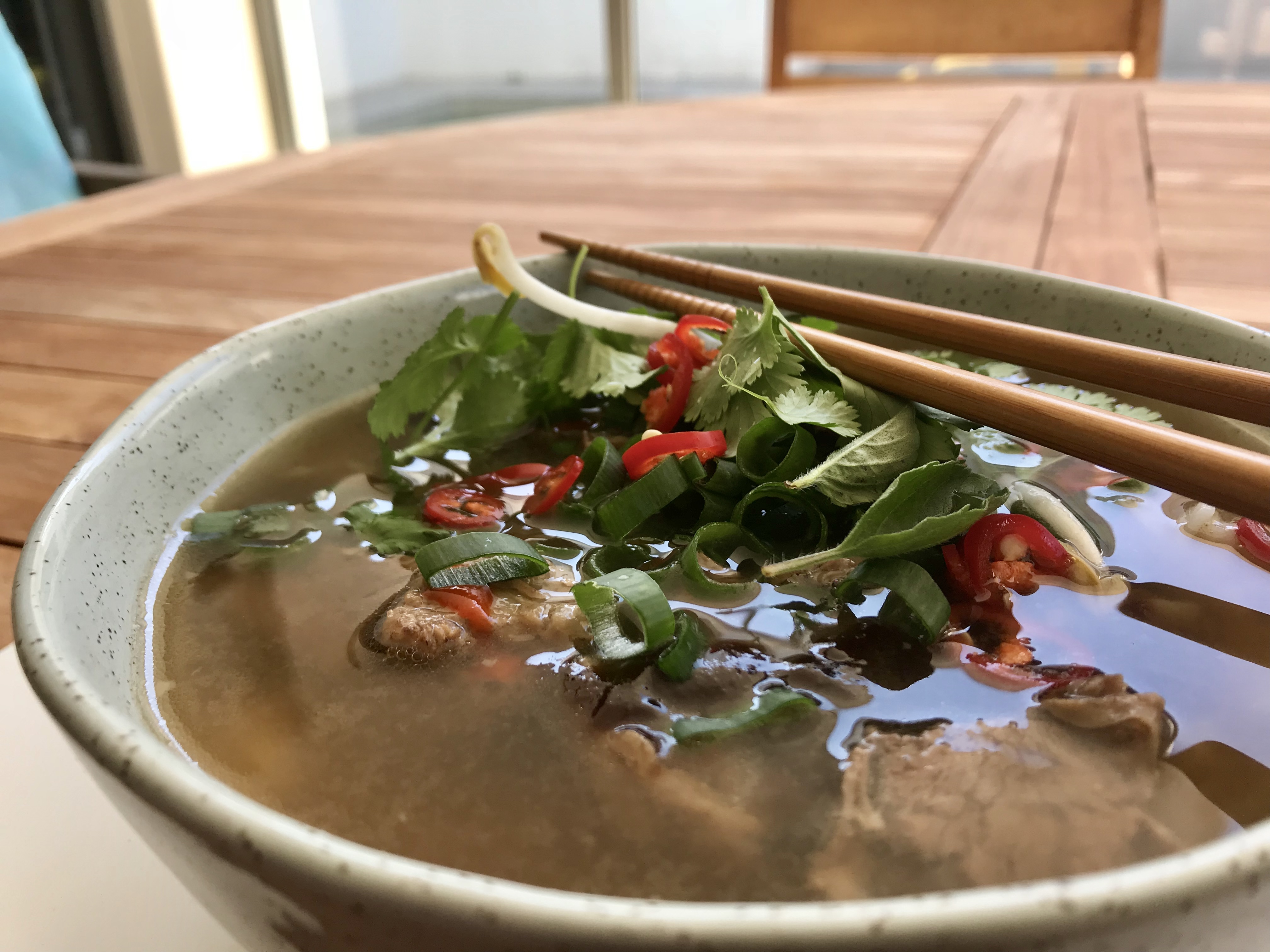 The problem is, the really good pho – the pho that you get at really good pho places – involves making stock from beef bones and simmering it for 4 hours or more. Of course, you get the benefit of the bone broth, but it’s not exactly a quick fix for a craving. The other thing is, a real pho, as fabulous as it is, does have a reasonable amount of fat in it – which isn’t a great thing when you’re trying to be a little less heavy than you currently are.