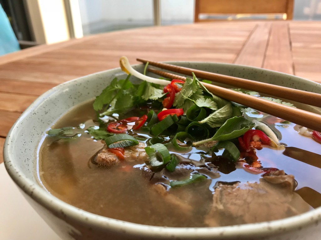 Pho, (pronounced “fur” or “fuh” for the uninitiated) is one such dish. It started life as a labourer’s breakfast and is now a lunchtime favourite.