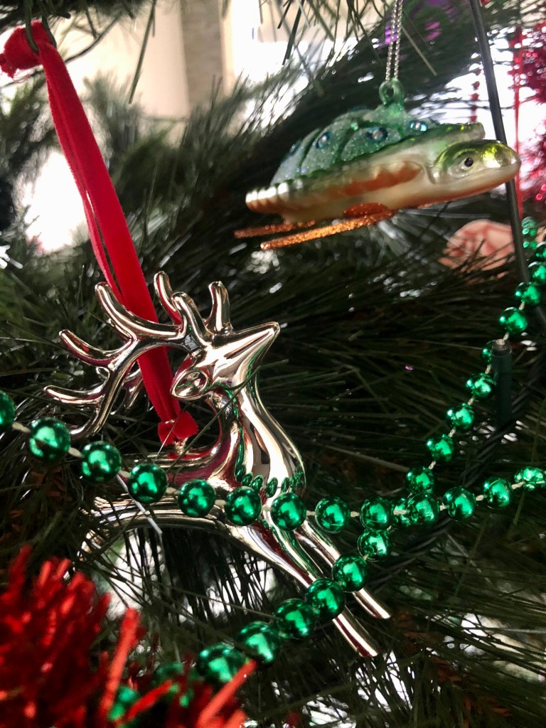Our tree goes up on the first Sunday in December with all the rituals – potato scones, pinwheels, and champagne. It’s a fake tree and it’s full of decorations we’ve acquired over the thirty-two Christmases we’ve spent together.