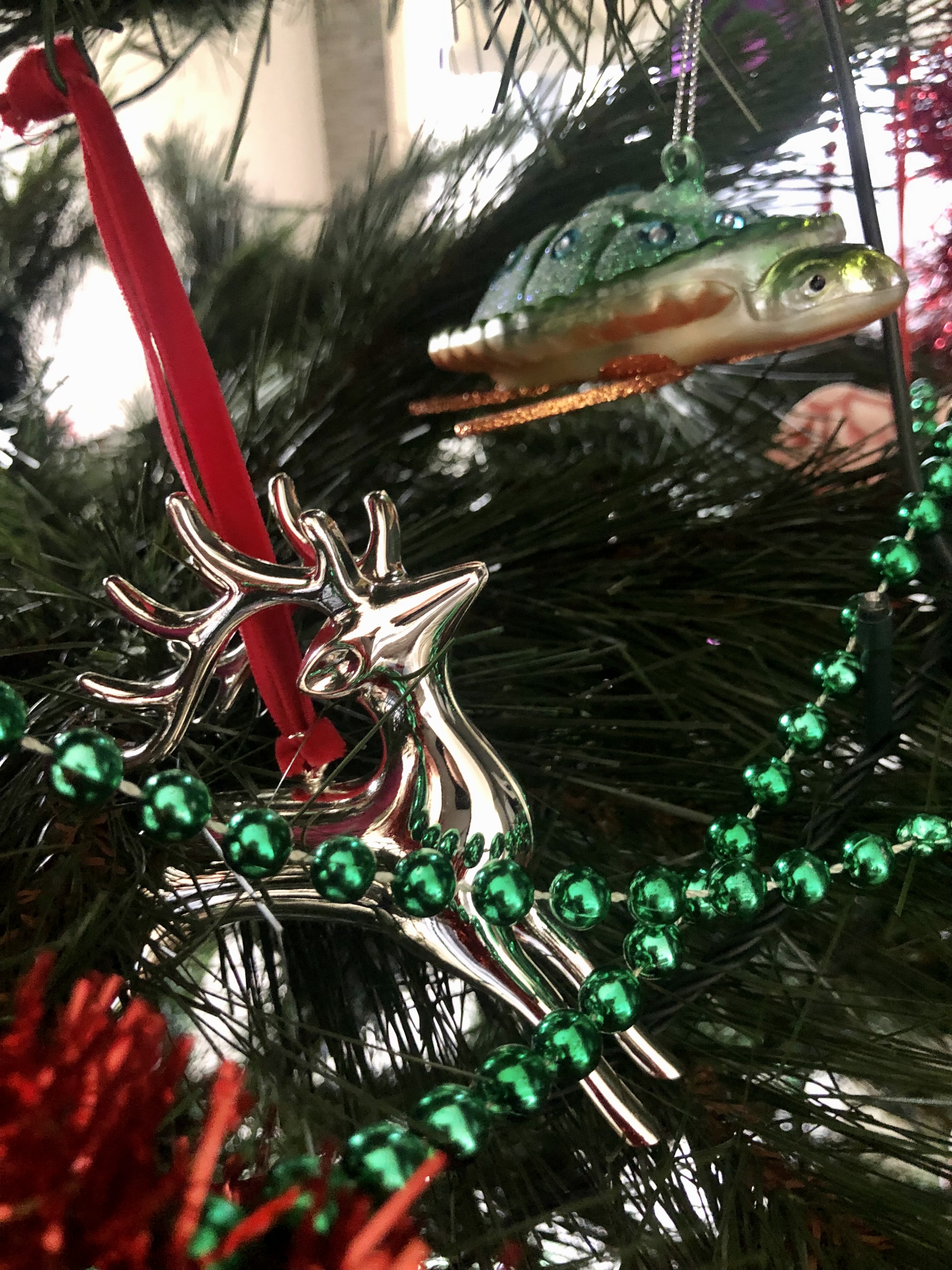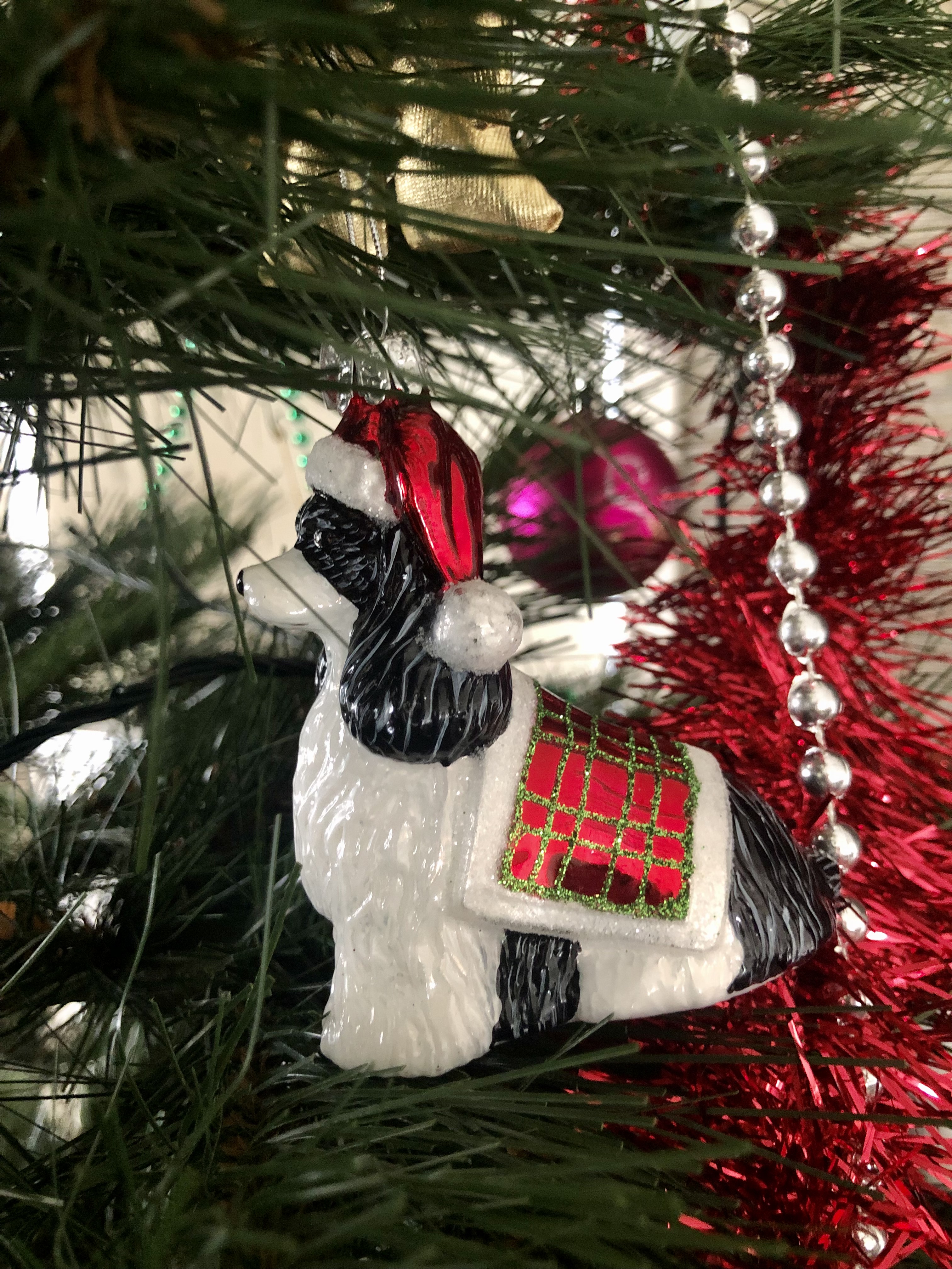 Our tree goes up on the first Sunday in December with all the rituals – potato scones, pinwheels, and champagne. It’s a fake tree and it’s full of decorations we’ve acquired over the thirty-two Christmases we’ve spent together.