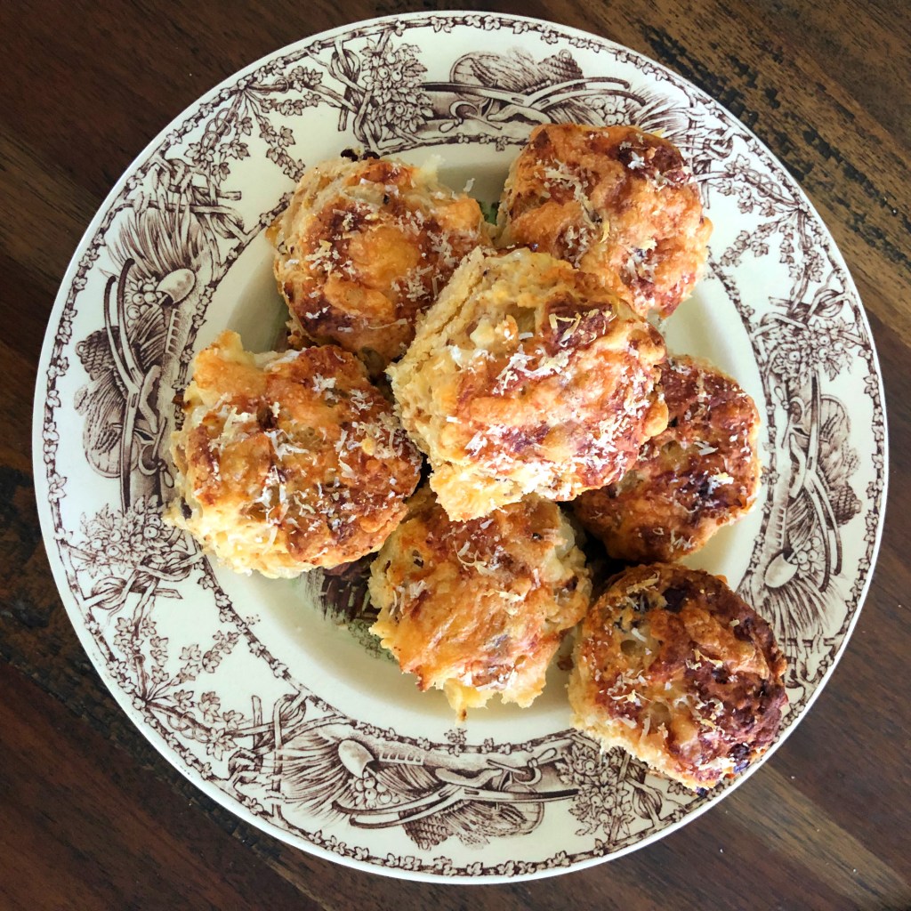 One savoury treat that I make at this time of the year that would be on my drinks party menu – if ever I were to host one – is Delia Smith’s mini cheese, onion and olive scones. Delia’s are the perfect one bite canape; mine, I fear, are a tad bigger. This is partly because I don’t have a teeny scone cutter and partly because I like them better this way.