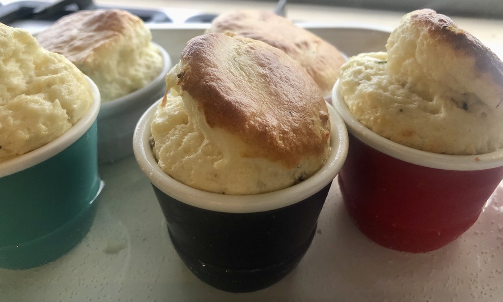 In addition to that, in book club we cooked Parkin, and I tried my hand at double baked cheese souffles. The pic below is what they looked like when they came out of the oven the first time.