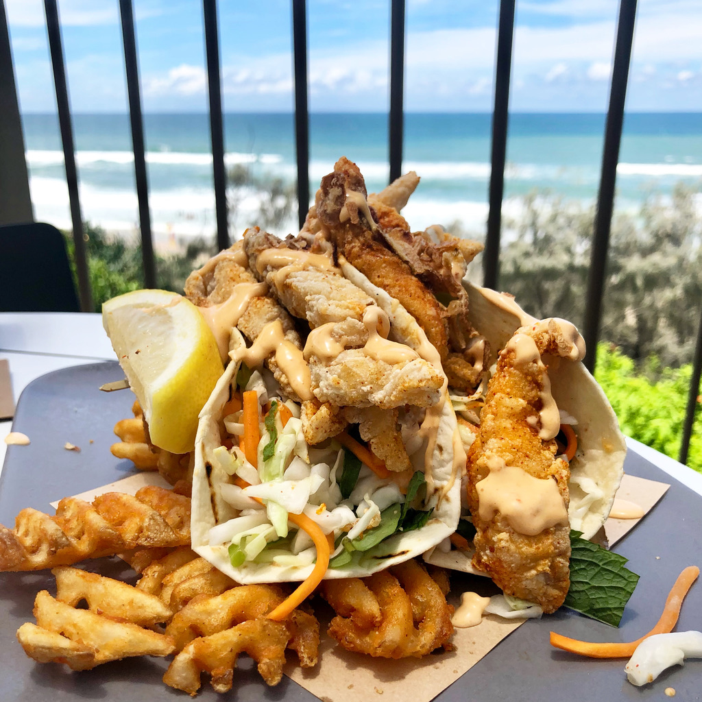 Also, because Sarah and Grant and I had taken annual leave days in order to fly home from Sydney, we treated ourselves to a day away from teh office and lunch at Sunshine Beach Surf Club. (That’s Grant’s taco in the pic below.)