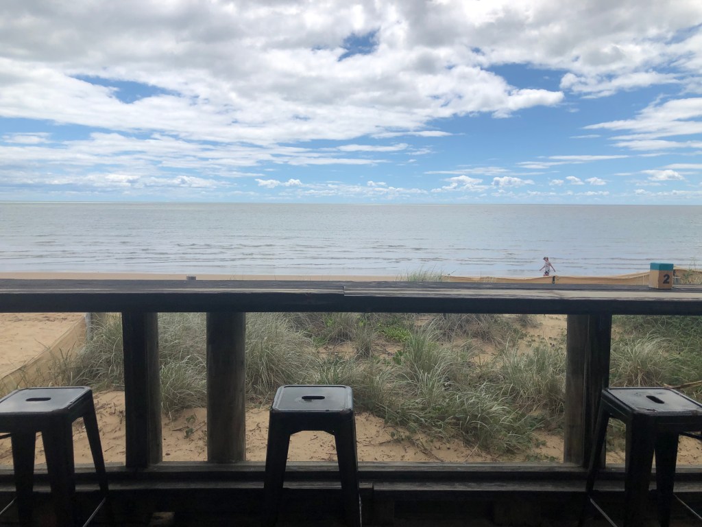 We did, however, manage to meet up for lunch as well – also on the beach, but this time at Aquavue, a few blocks from where my daughter lives at Torquay. Not a bad view from here either.