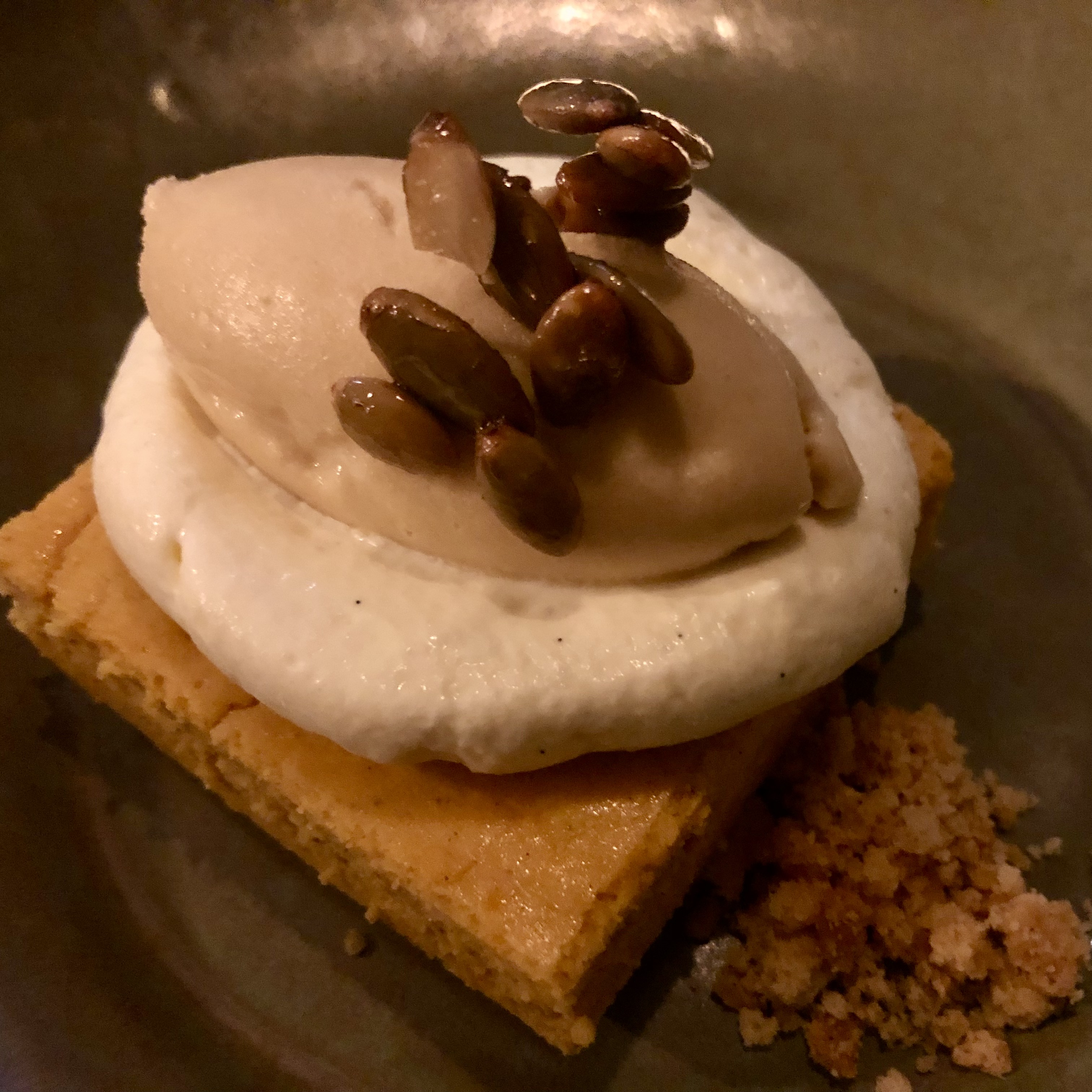 We began with radishes served with the softest, pillowiest taramasalata, and finished with pumpkin cheesecake, malt ice cream, candied pepitas and a speculoos crumb. I can count on one hand (and have fingers left over) the number of desserts I eat in a year, and this one was well worth the calories.