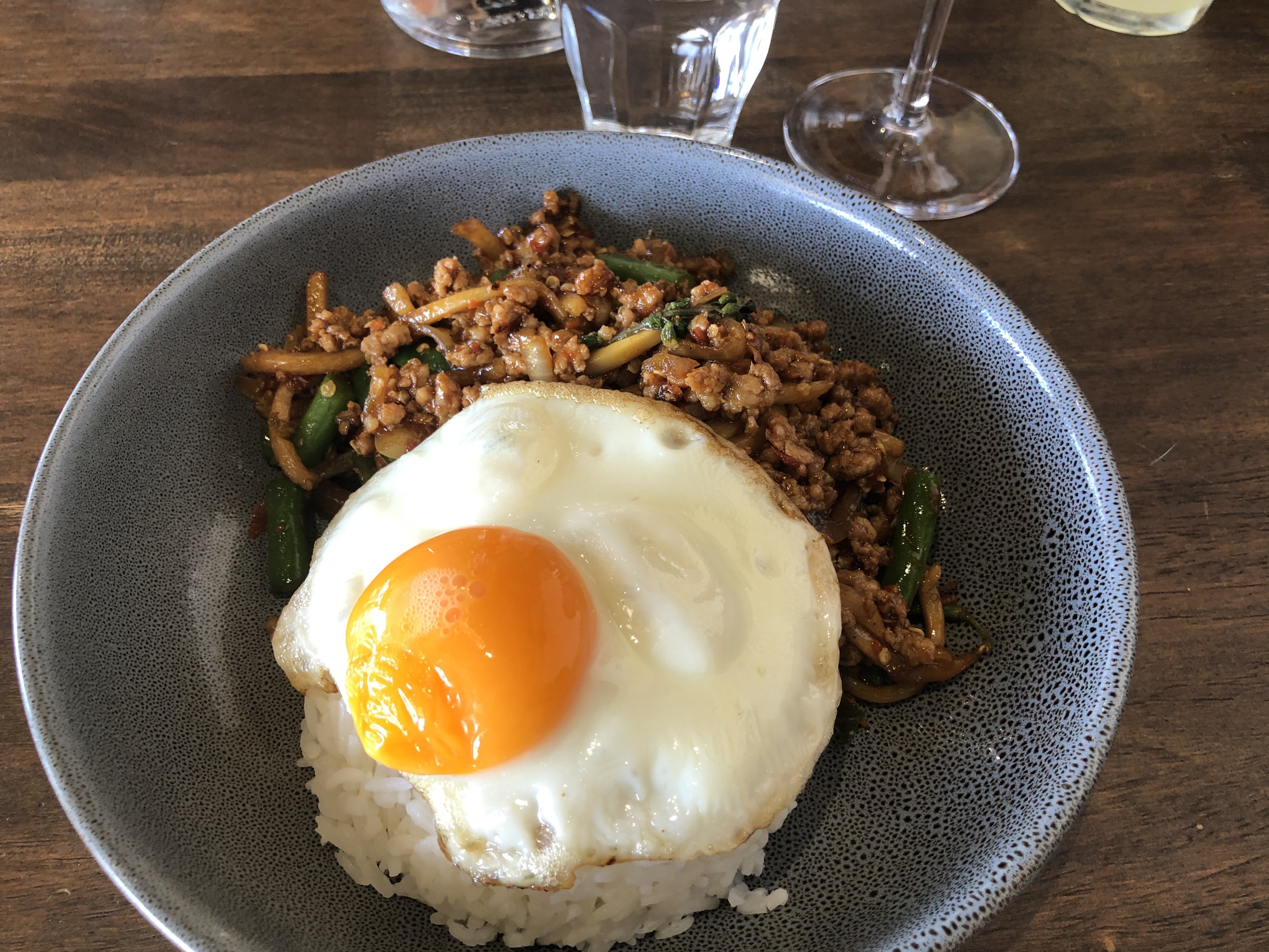 Fried eggs need to be still runny but not snotty (I pop a lid on for the last minute of cooking to firm the white up) and are best on top of Asian mince dishes.