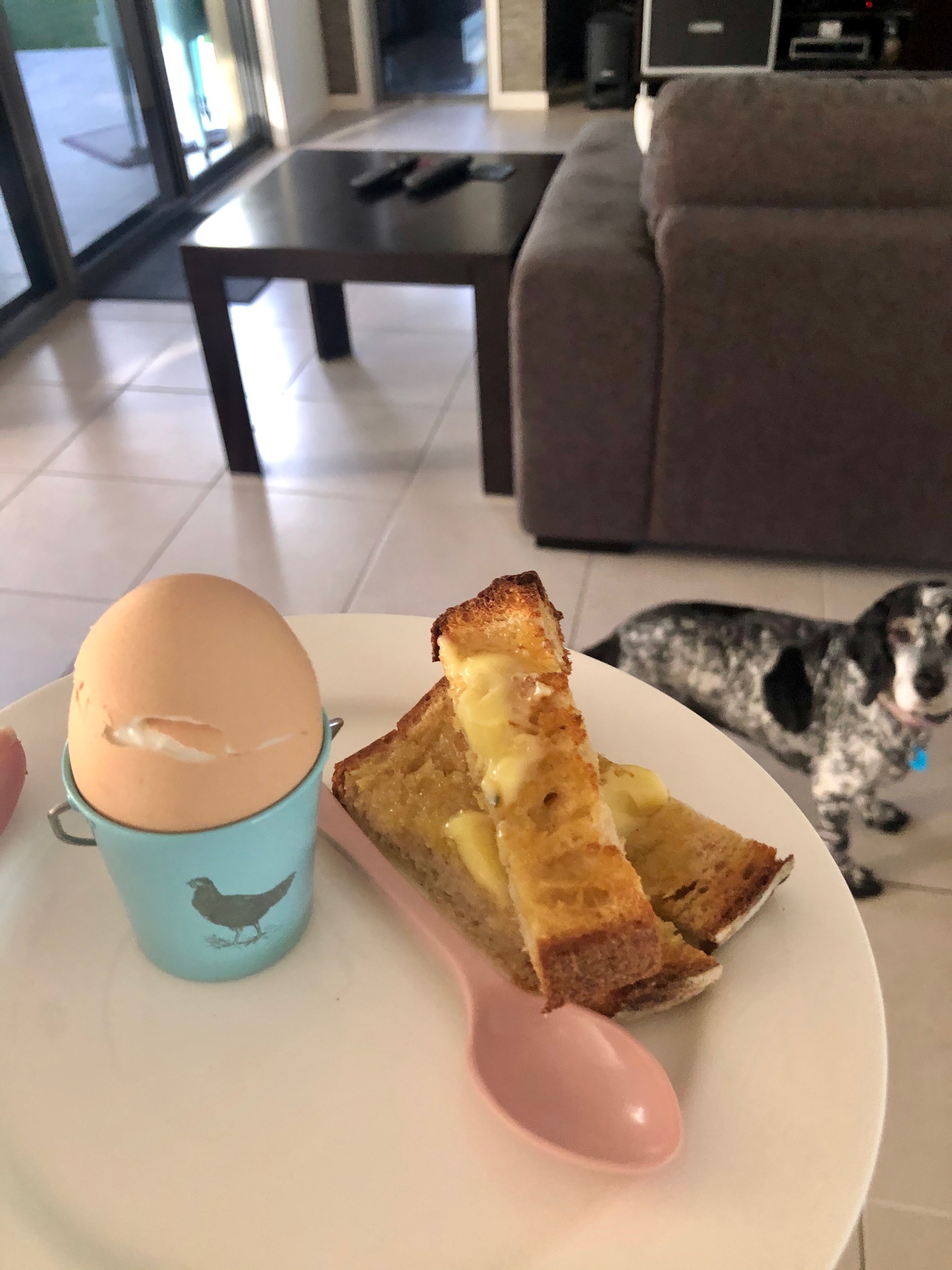 At least a few mornings a week I’ll have a boiled egg with rye sourdough toast fingers.