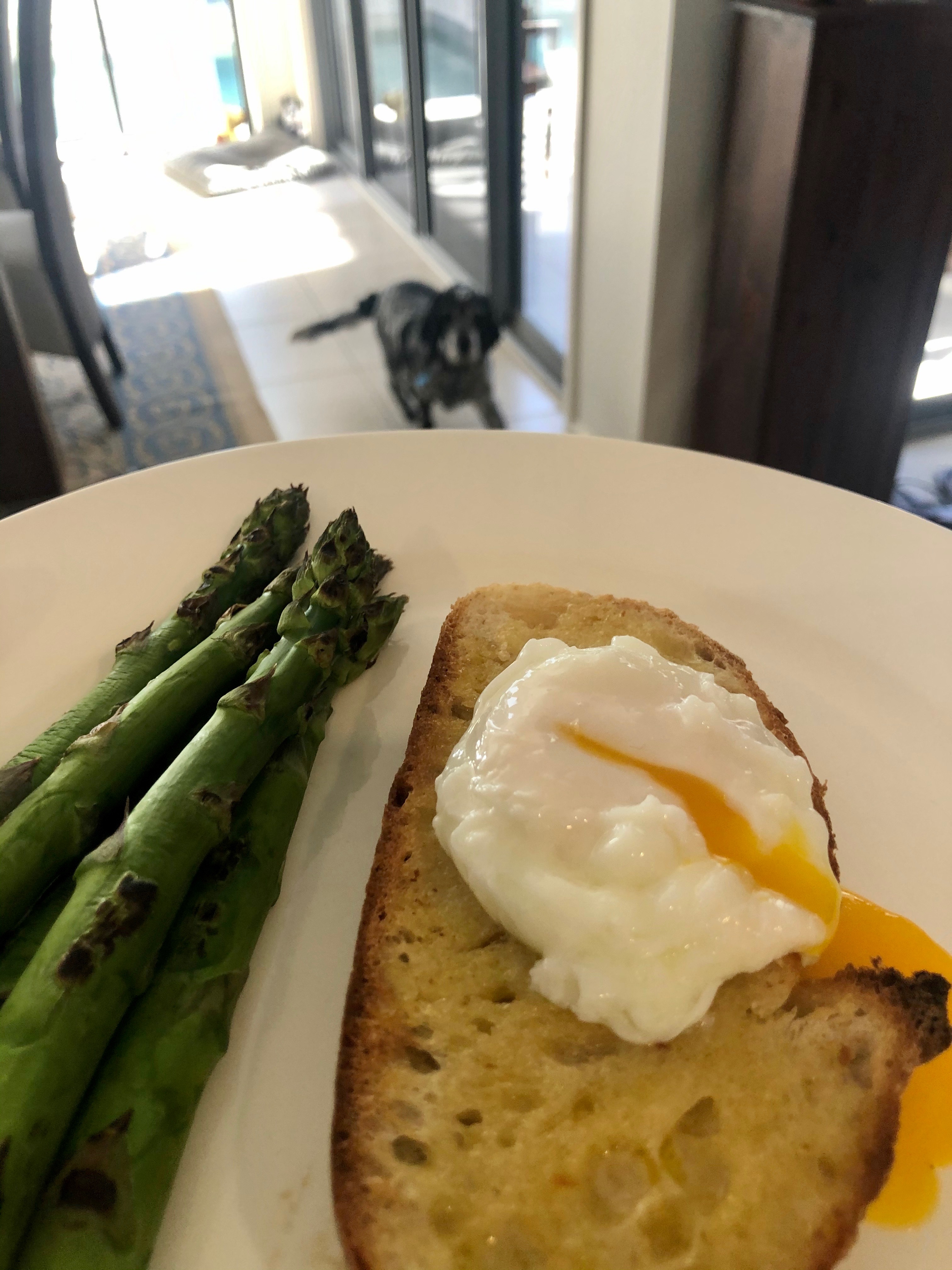 As for poached eggs, I love them with asparagus and do them Nigella’s way – into a tea strainer to get rid of the straggly bits and then into water that was previously boiling but is now turned off.