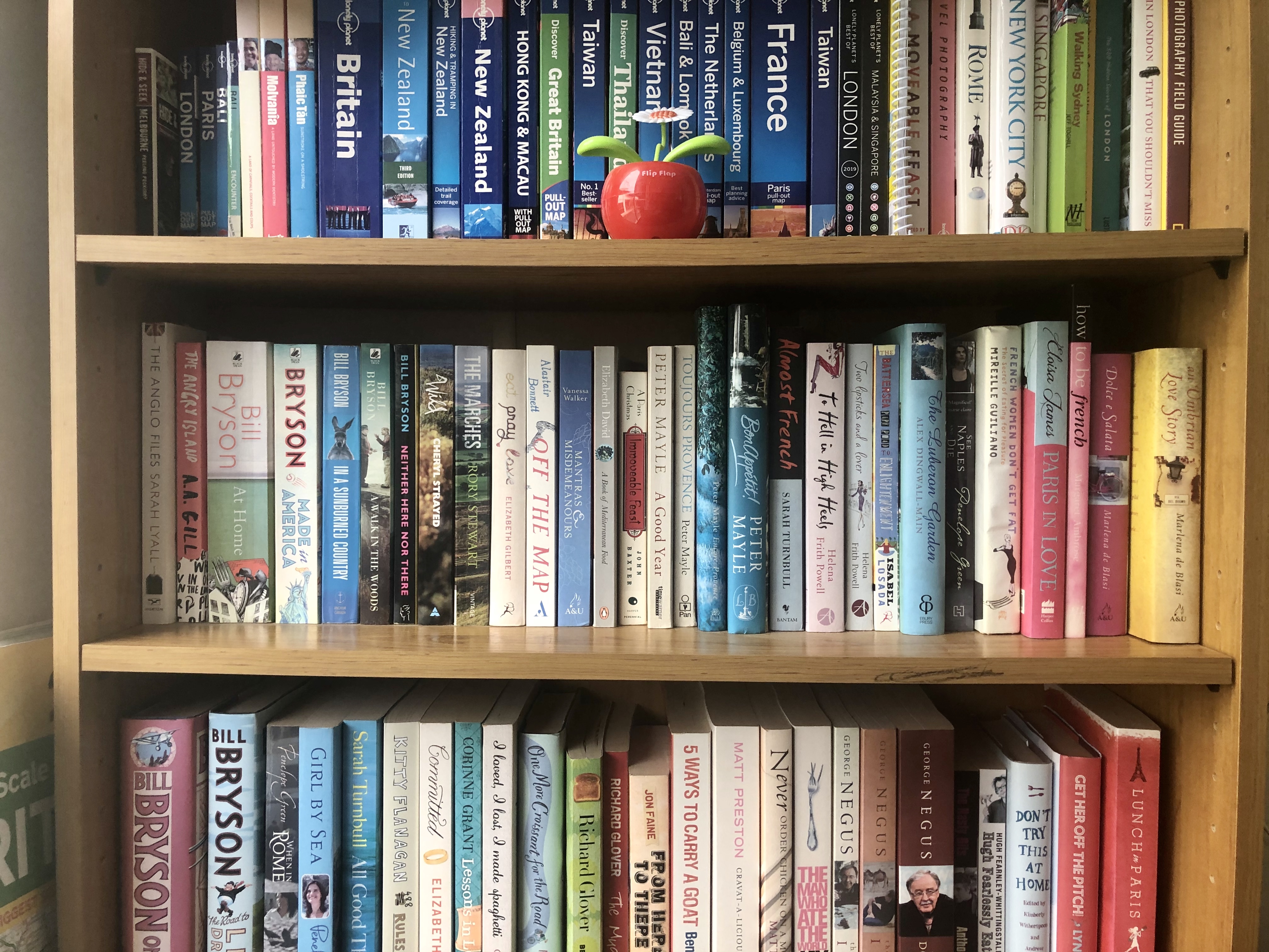 My travel bookcase lives in my home office as a constant reminder of the reason why I work – so I can escape from it. It’s full of guides to places I’ve been, and travel memoirs from fabulous writers about places I love or would like to visit.
